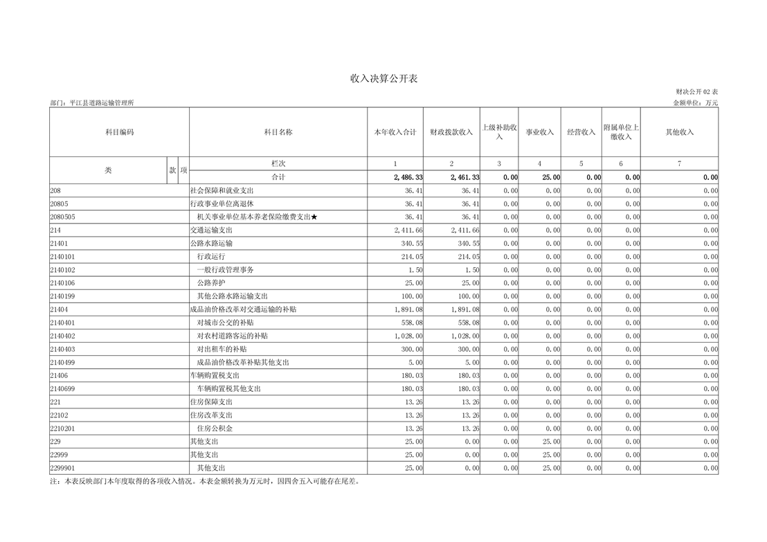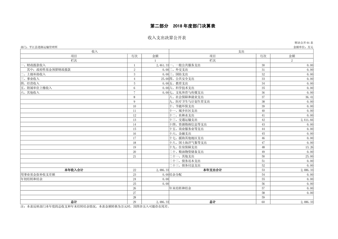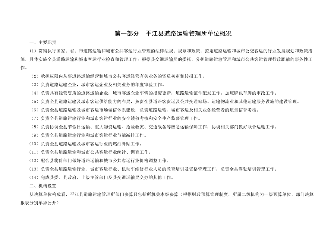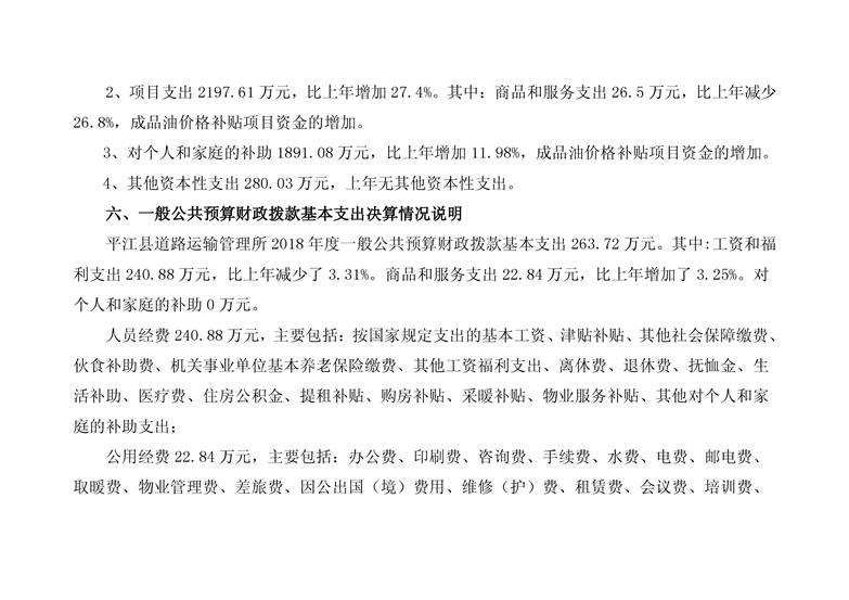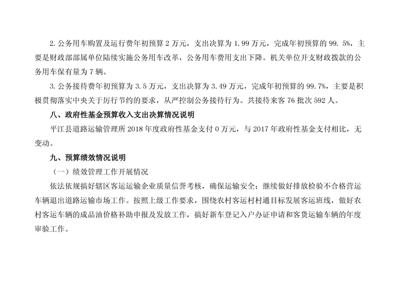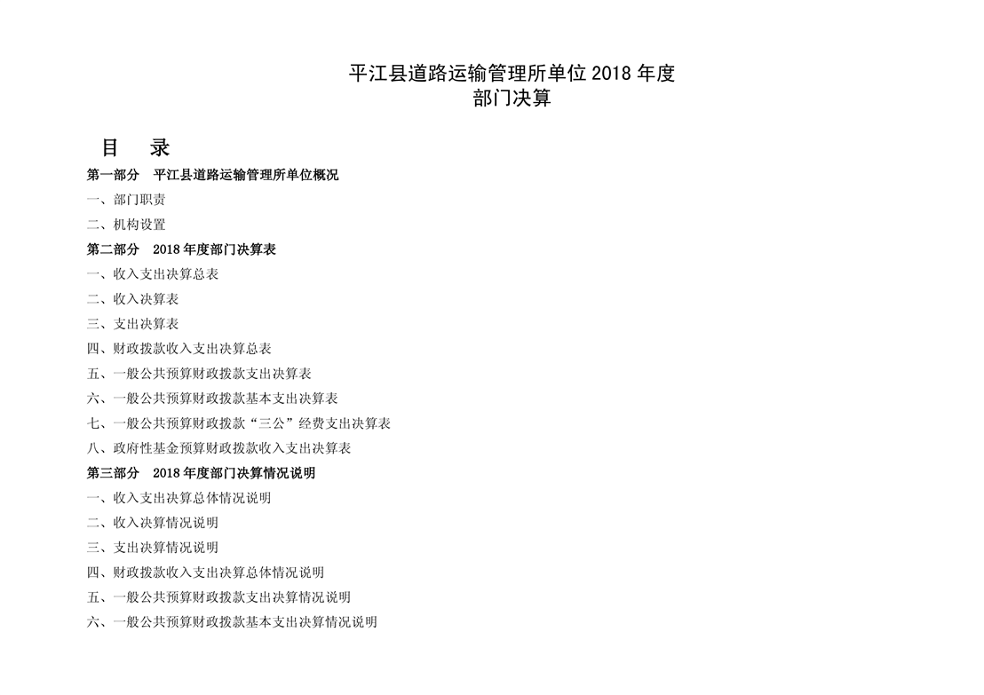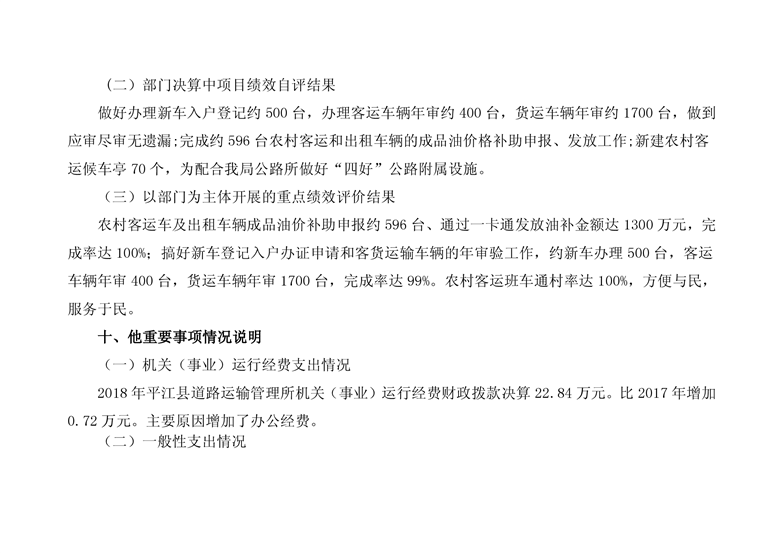 平江县道路运输管理所2018年部门决算编报说明