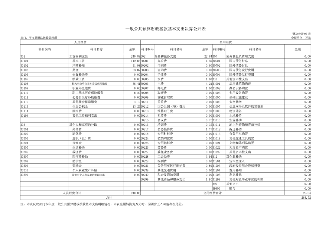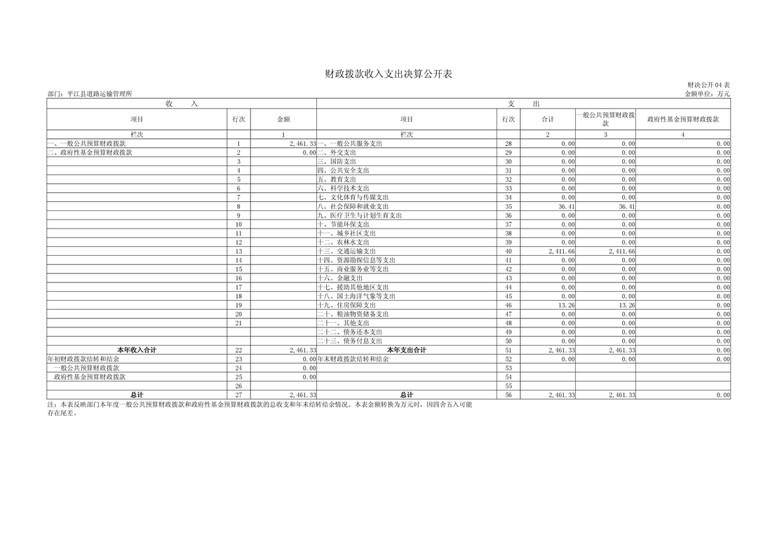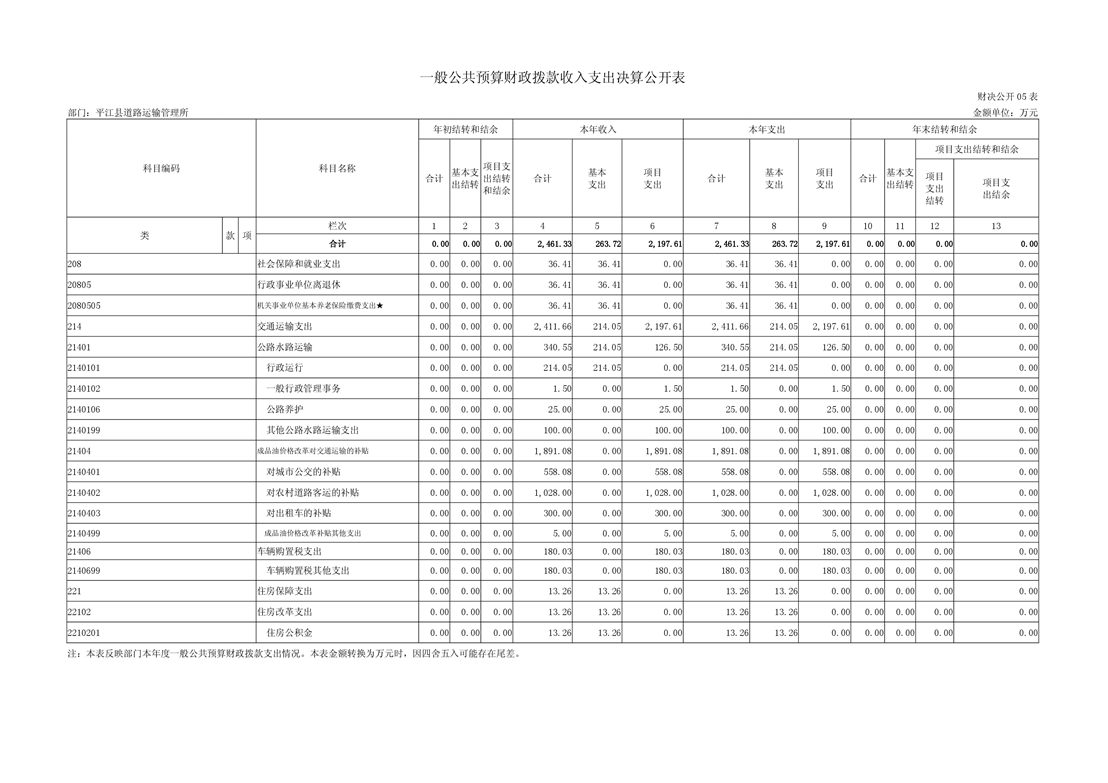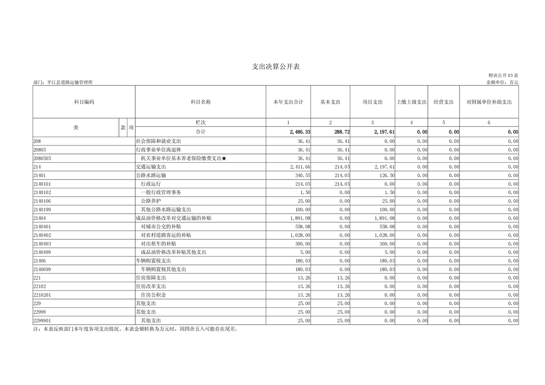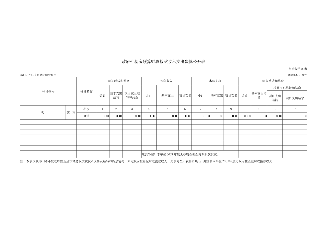 平江县道路运输管理所2018年部门决算编报说明