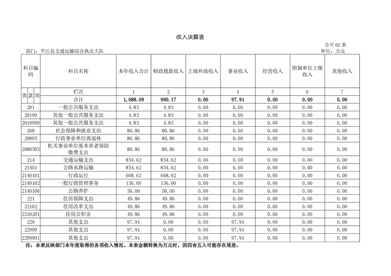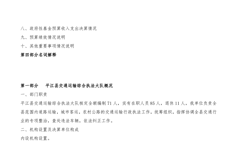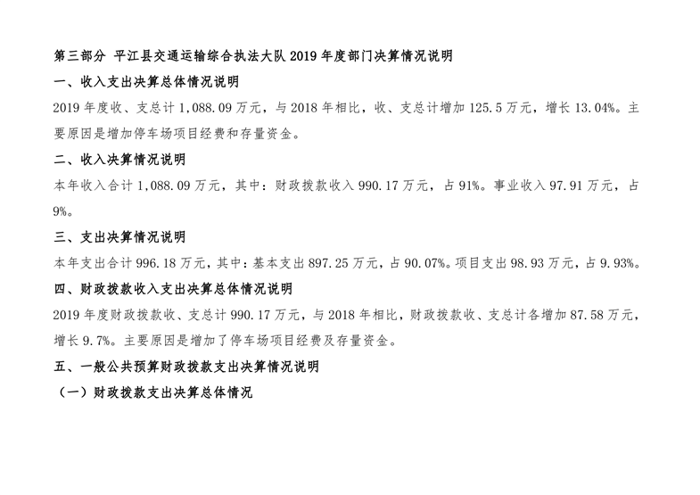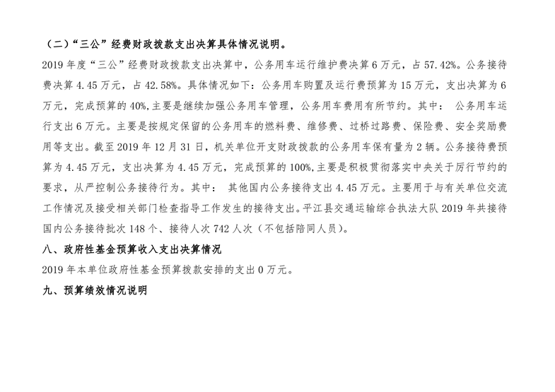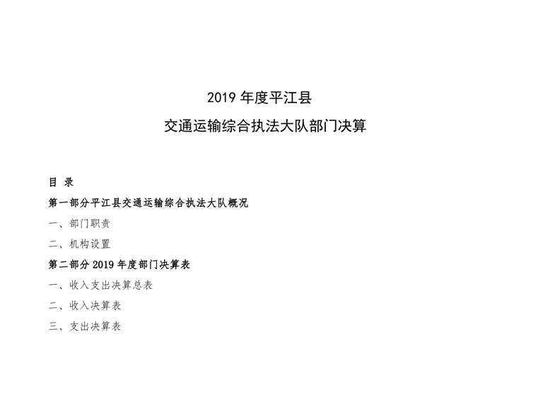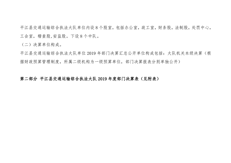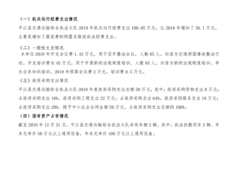平江县交通运输综合执法大队2019年部门决算编报说明