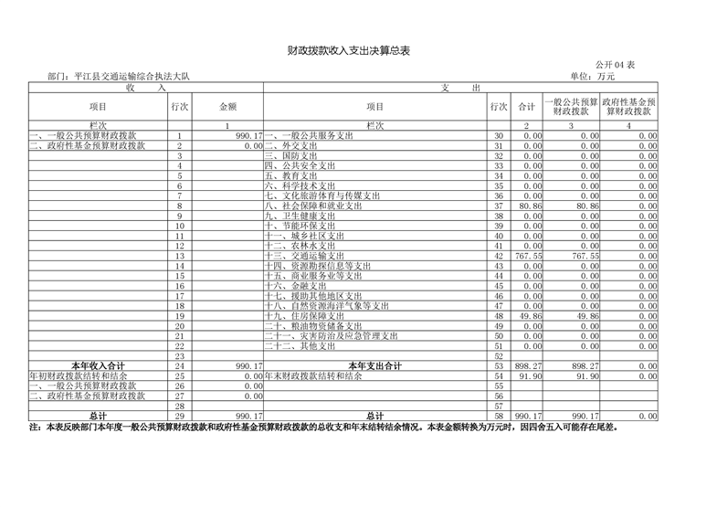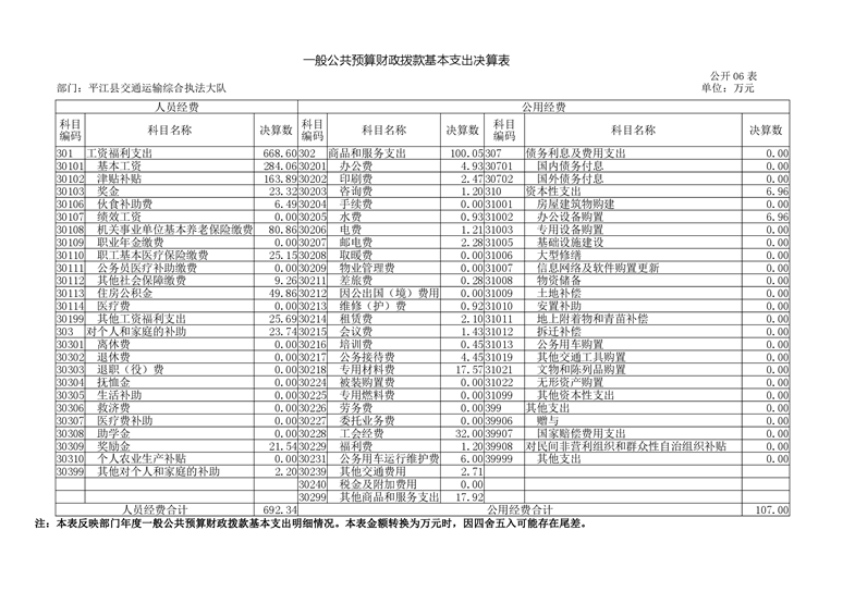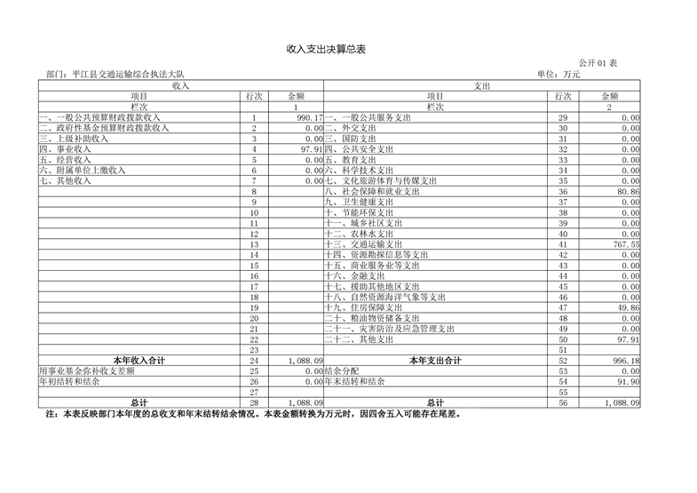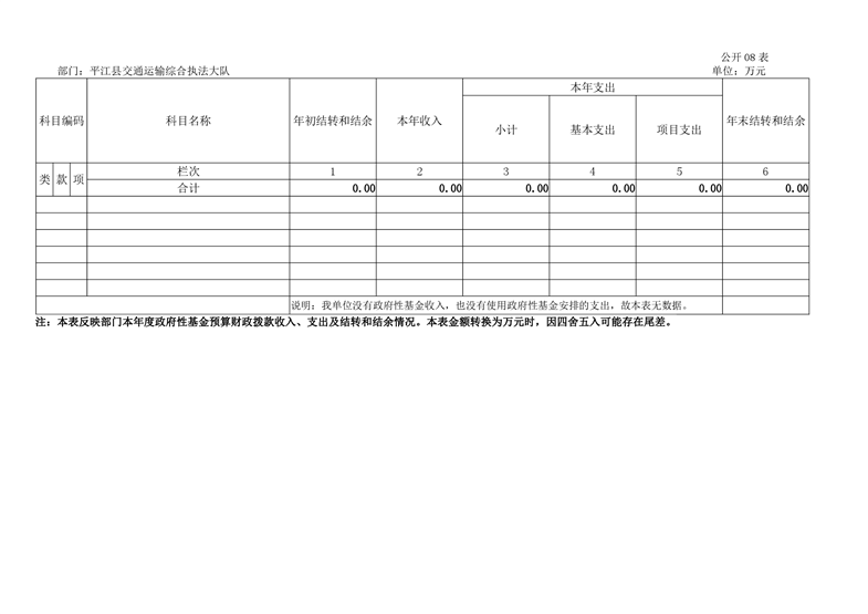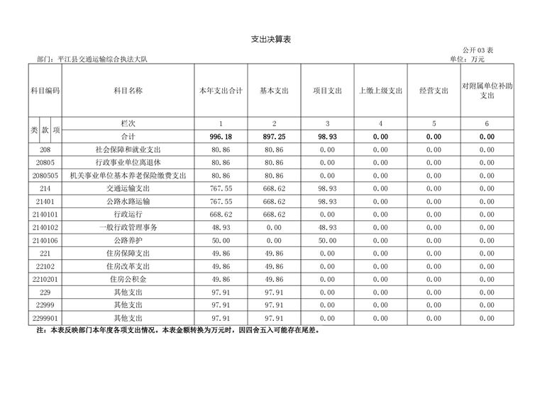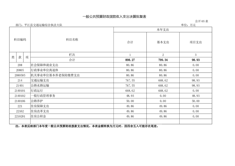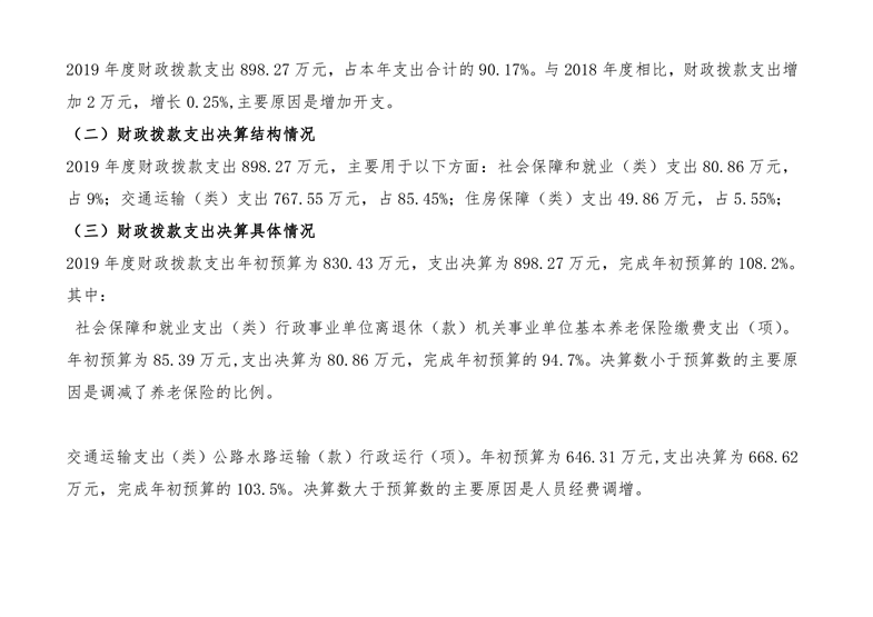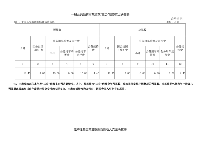 平江县交通运输综合执法大队2019年部门决算编报说明