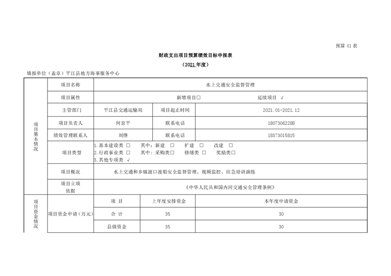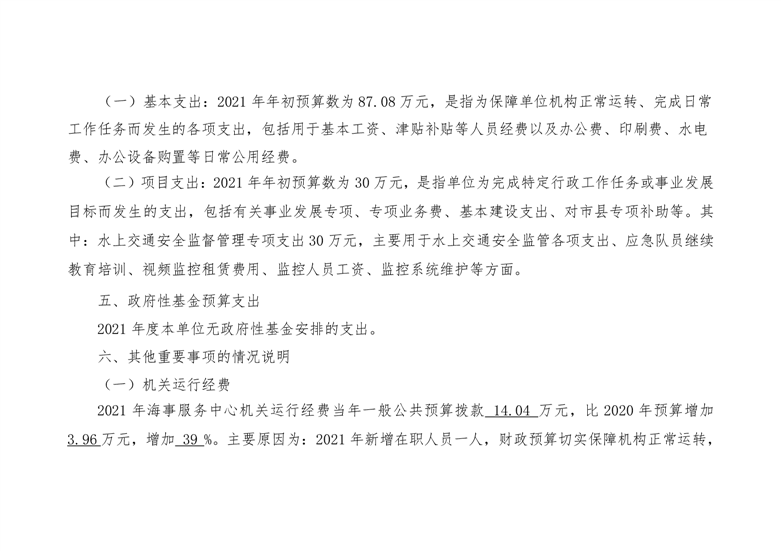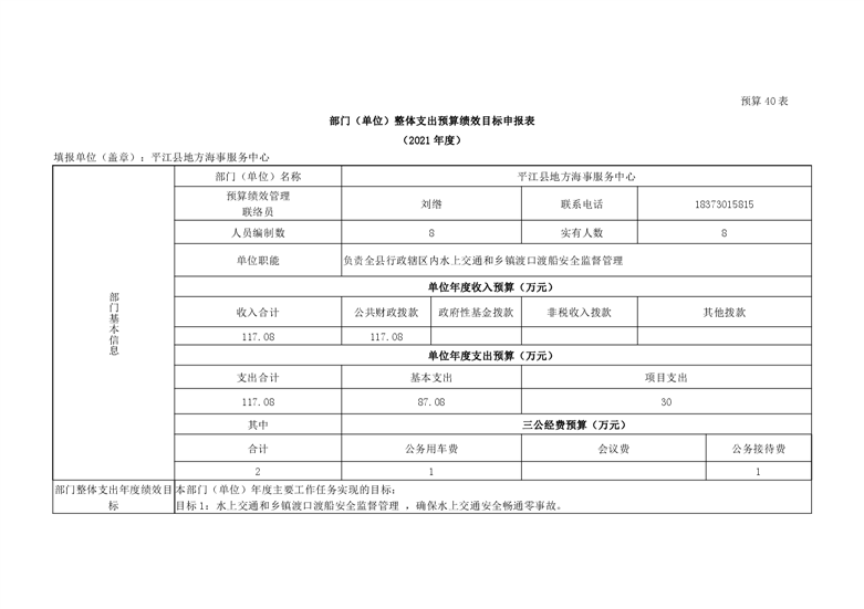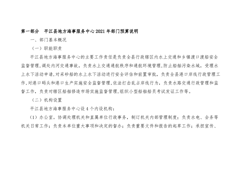 平江县地方海事服务中心2021年度部门预算编报说明