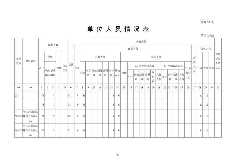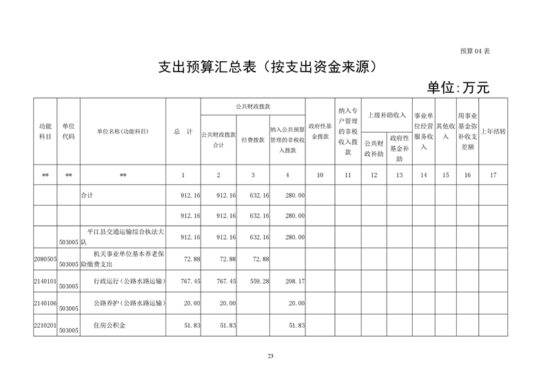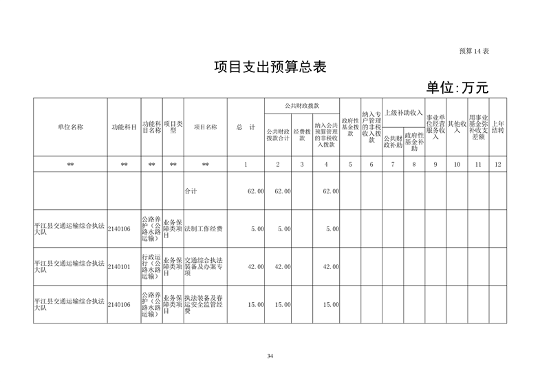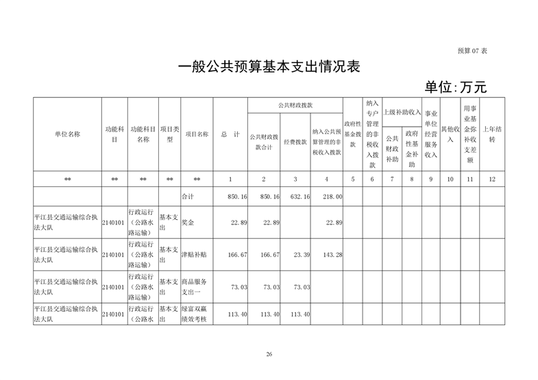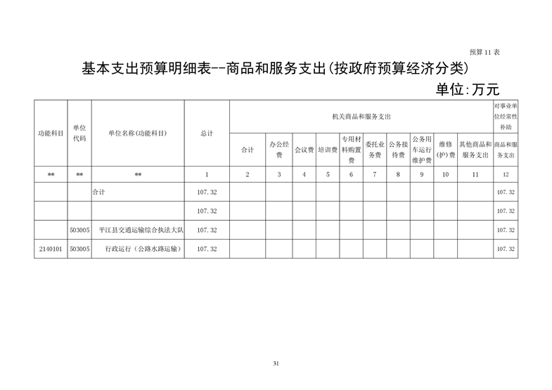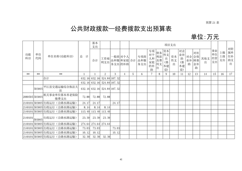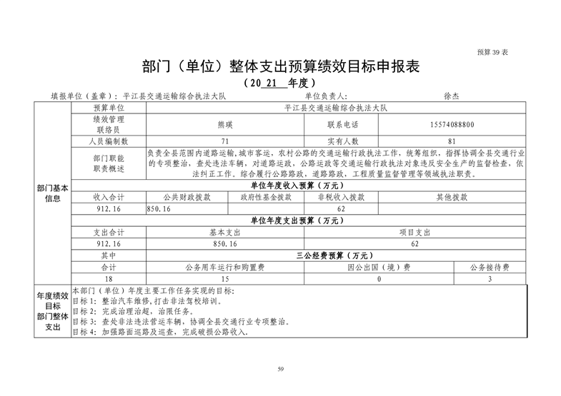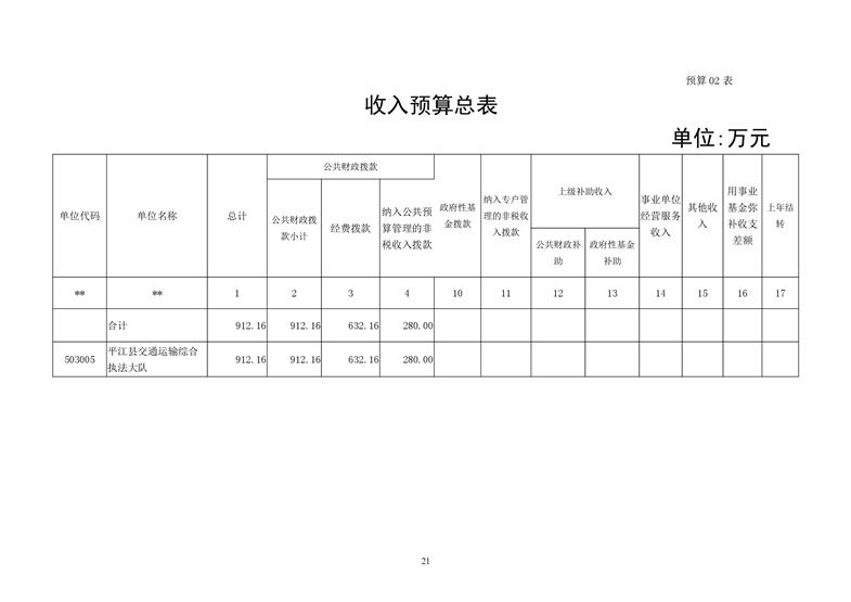平江县交通运输综合执法大队2021年部门预算编报说明
