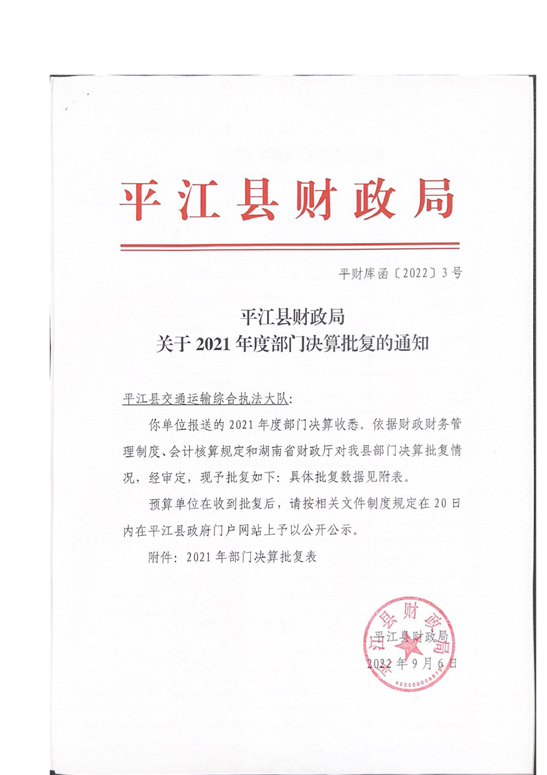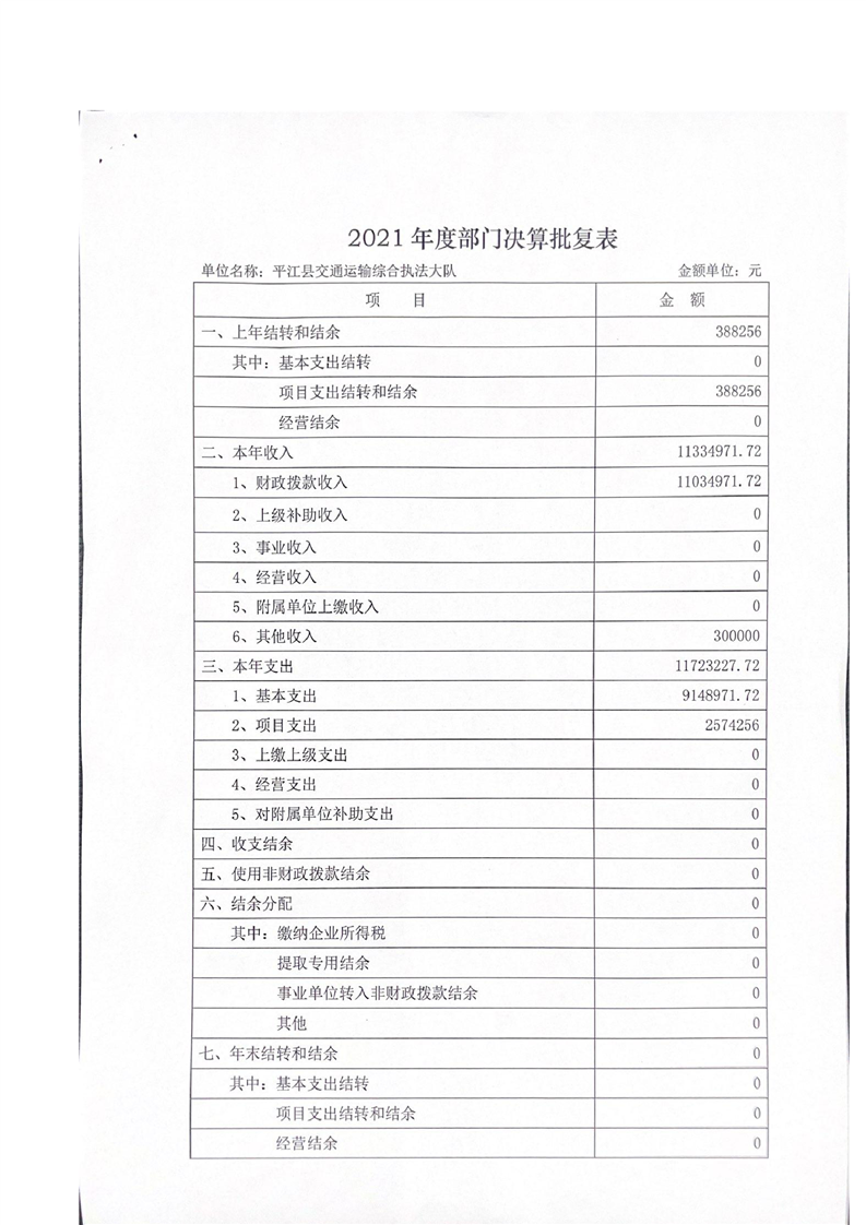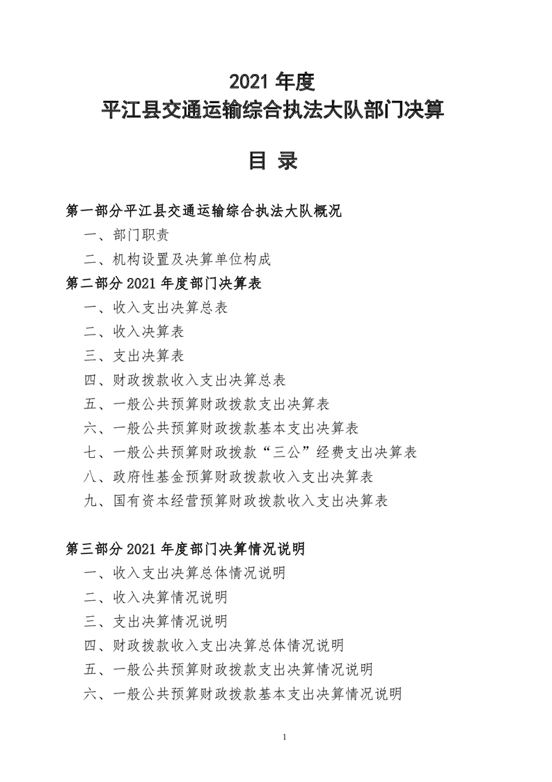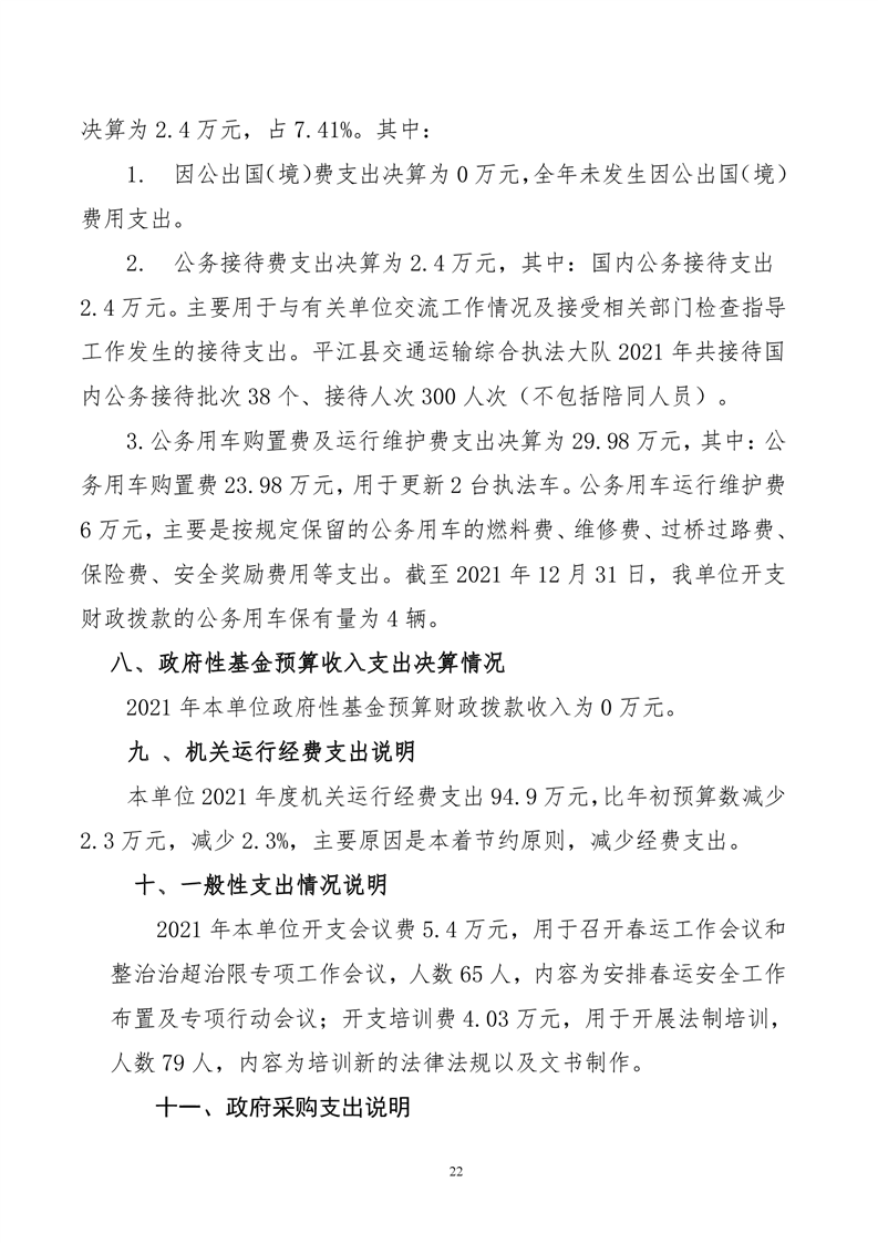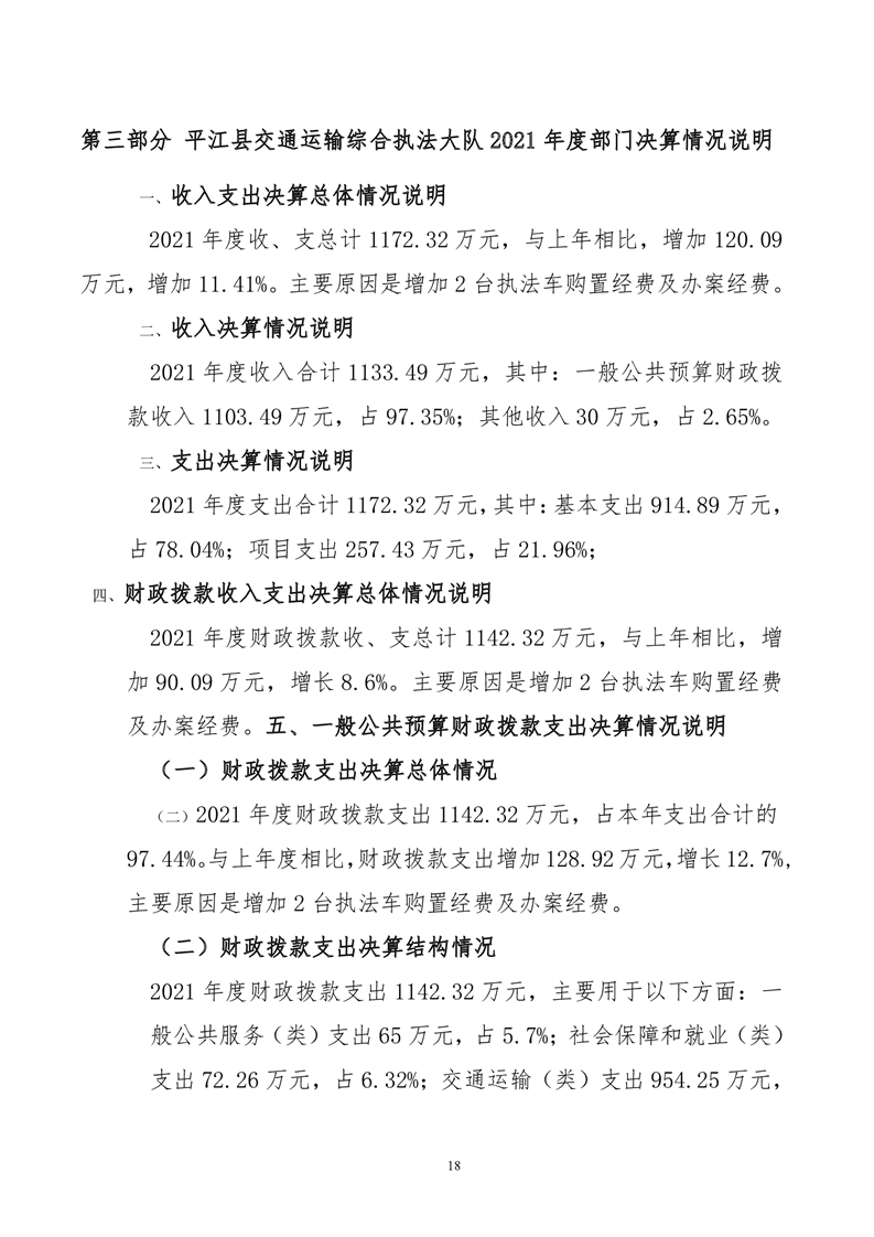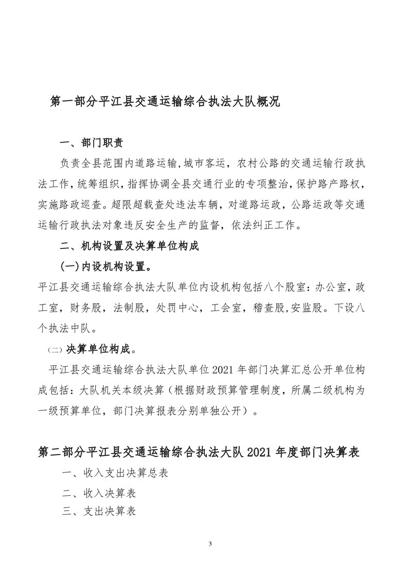平江县交通运输综合执法大队2021年决算公开