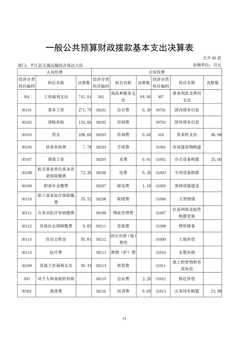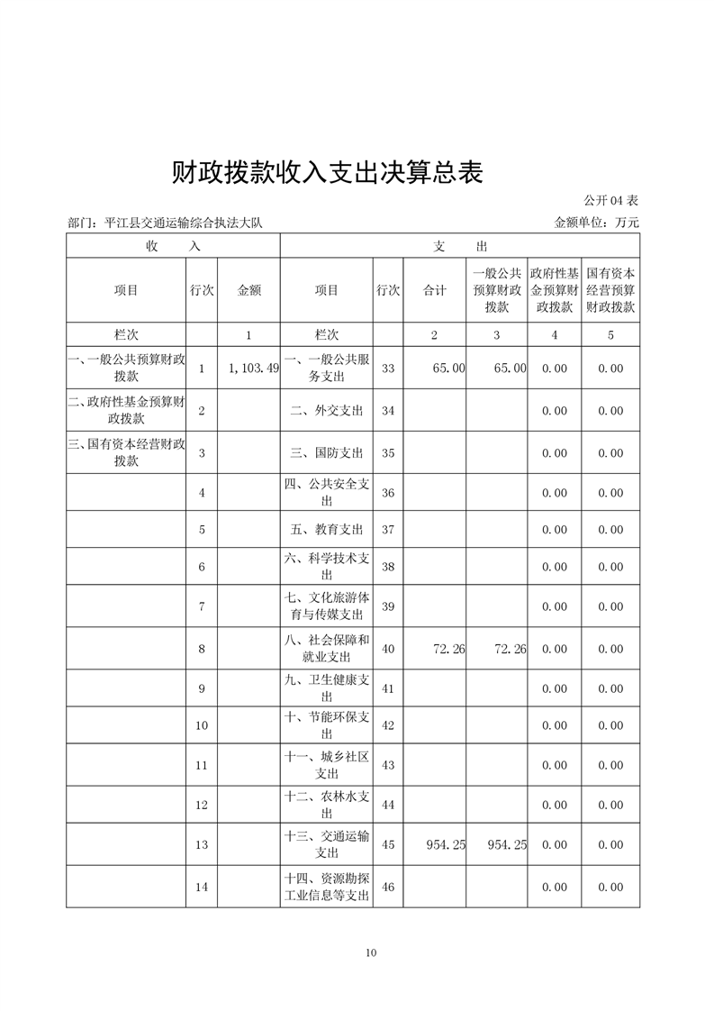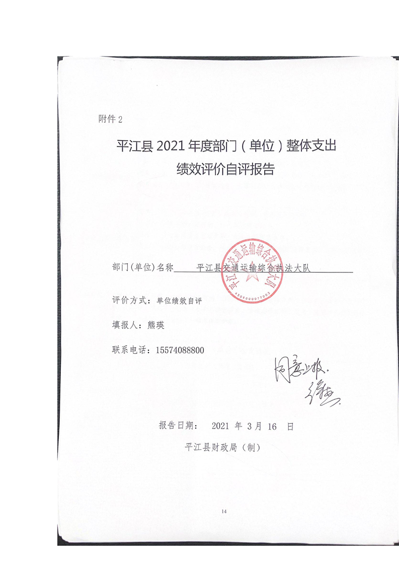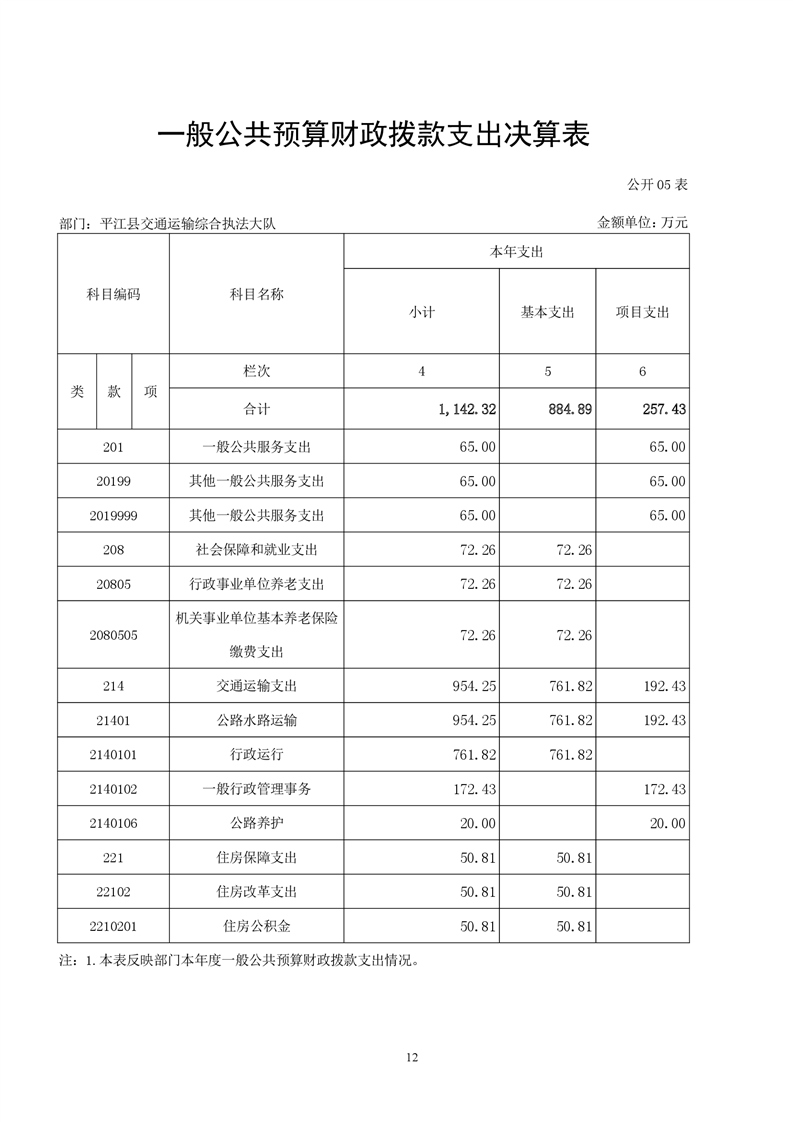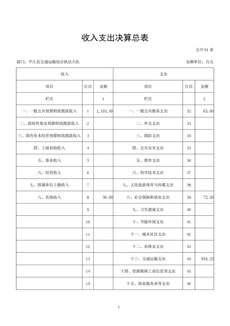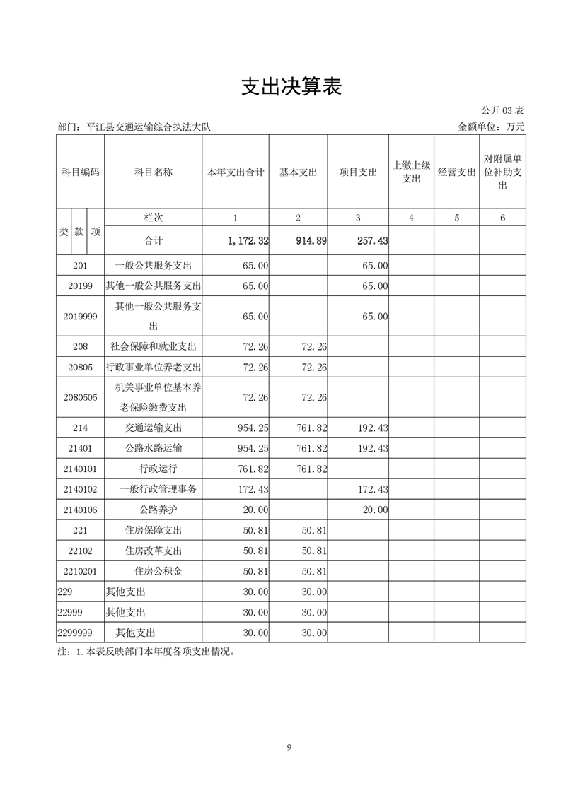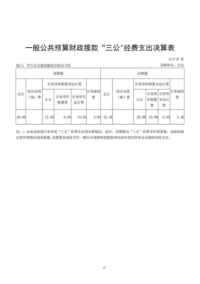 平江县交通运输综合执法大队2021年决算公开
