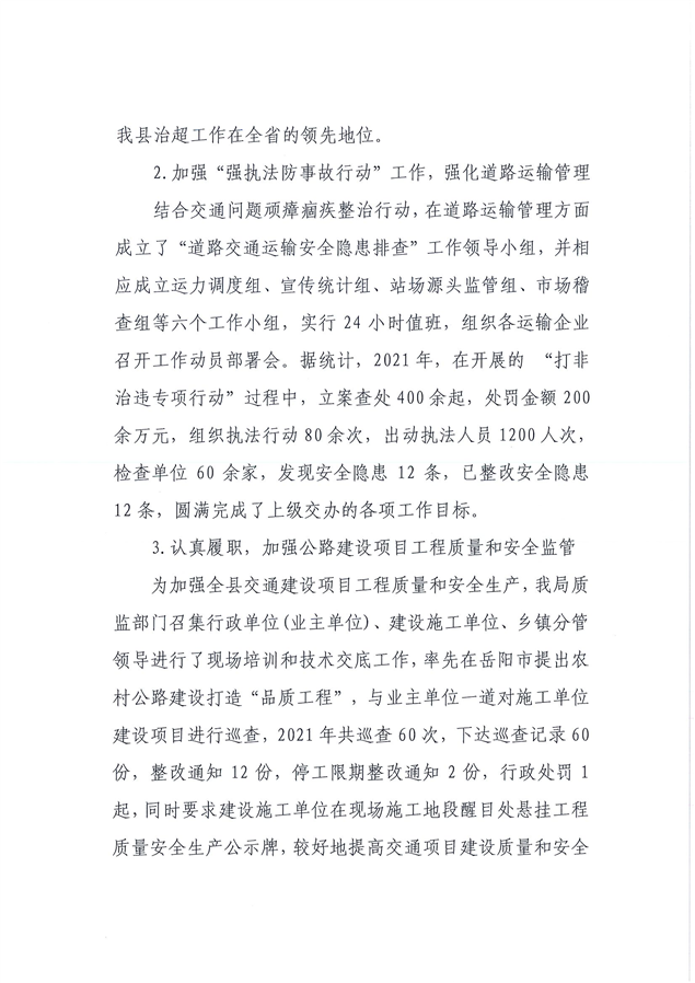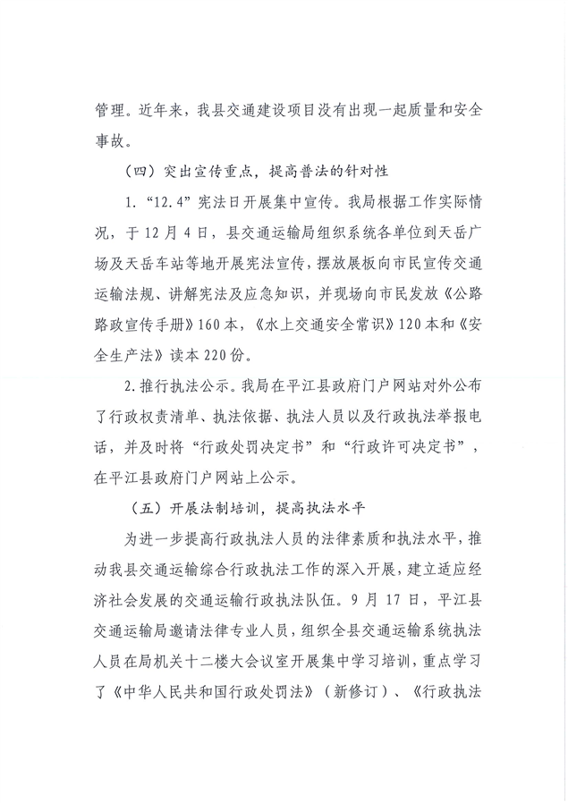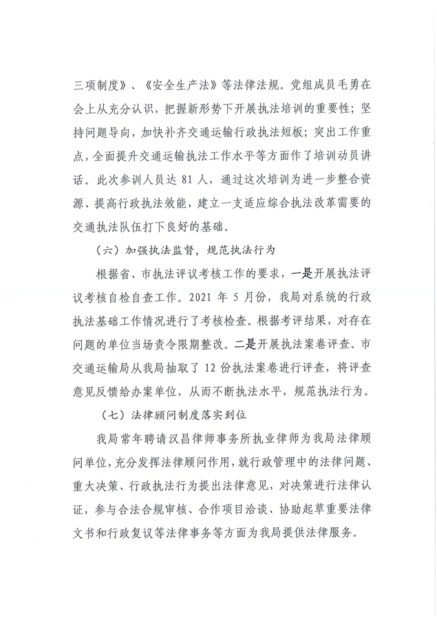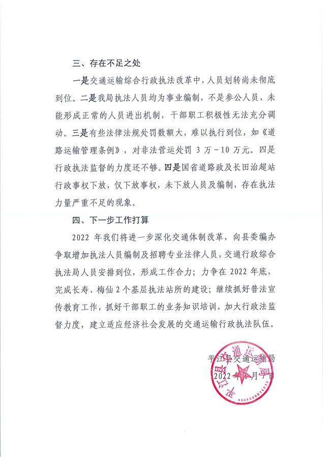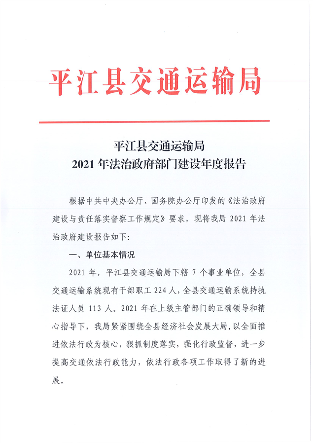 平江县交通运输局2021年法治政府部门建设工作年度报告