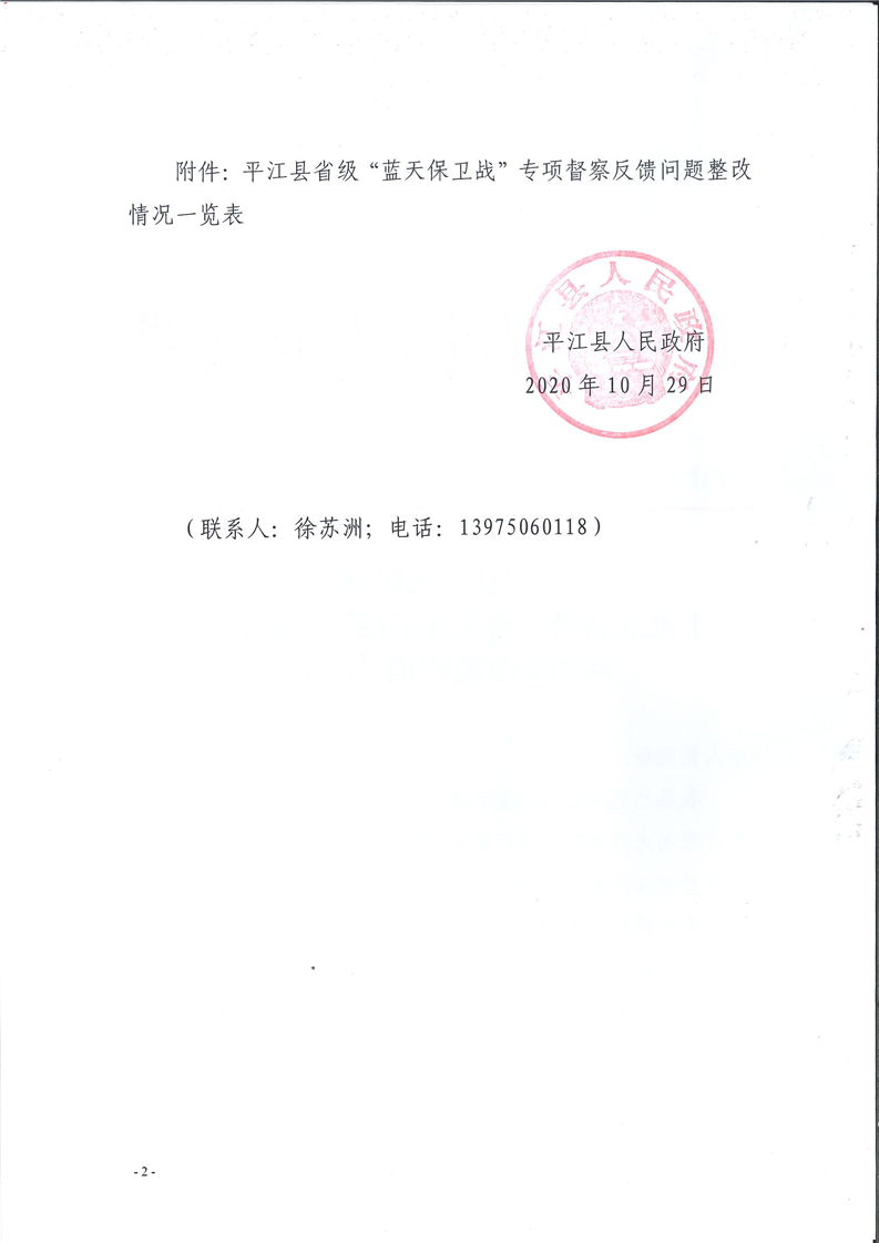 平江县人民政府关于批准省级“蓝天保卫战”专项督察反馈问题整改验收销号的请示