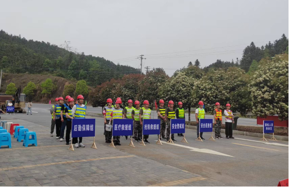 (安全巡查组、安全警戒组、抢险救援组、医疗救护组、后勤保障组正在集合、备练)