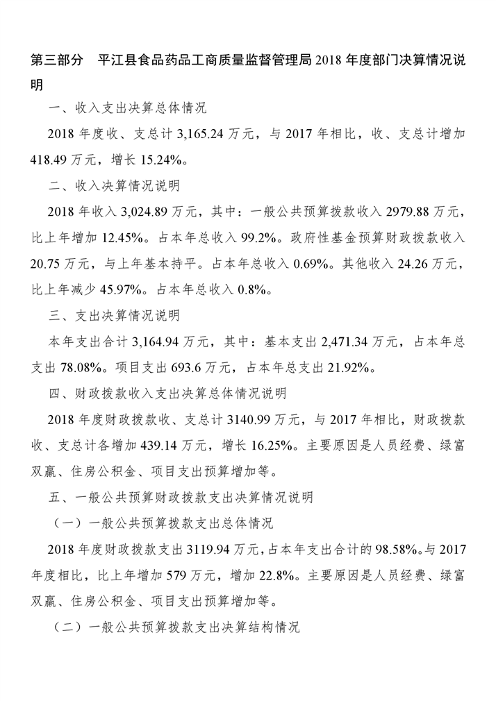 县食药工商质监局2018年部门决算编报说明