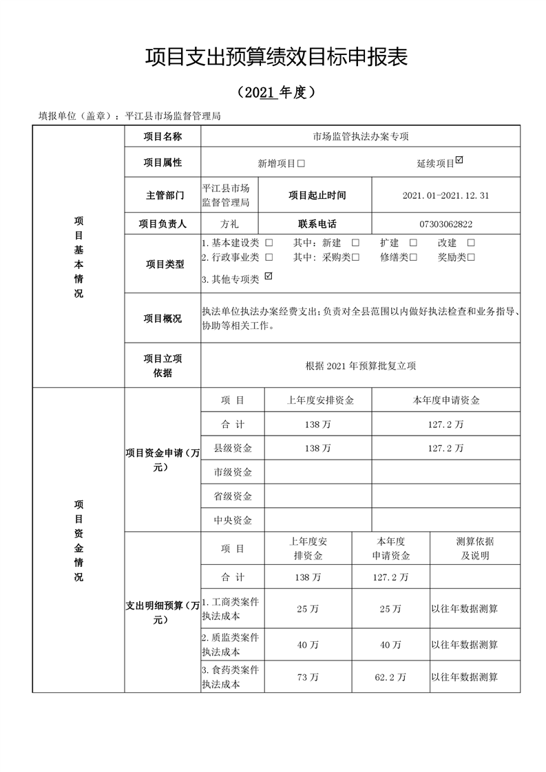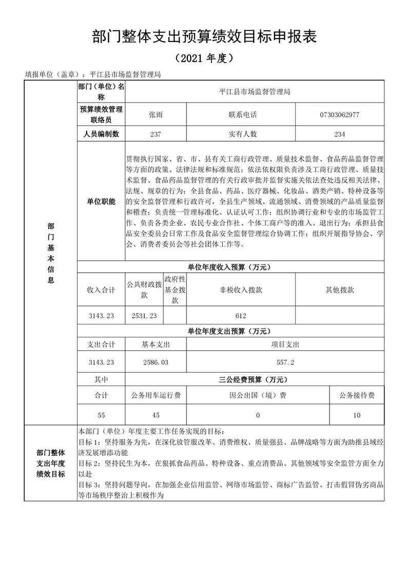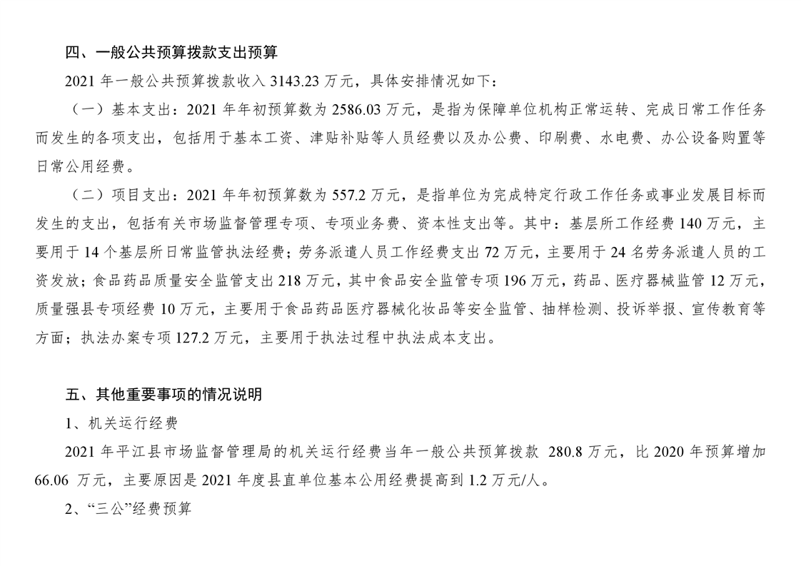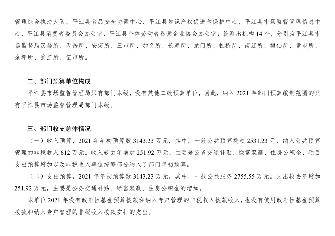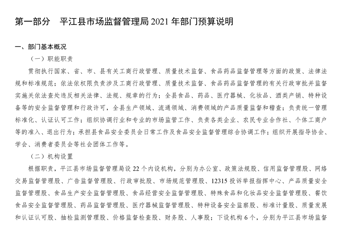 平江县市场监督管理局2021年度部门预算
