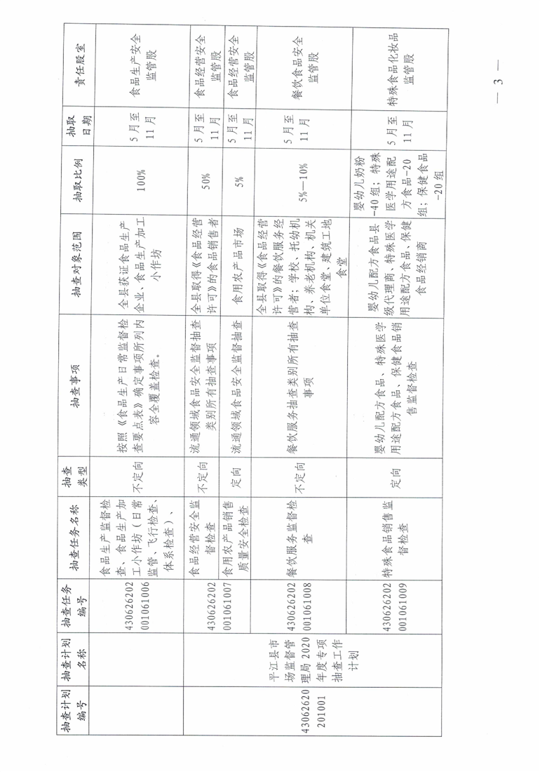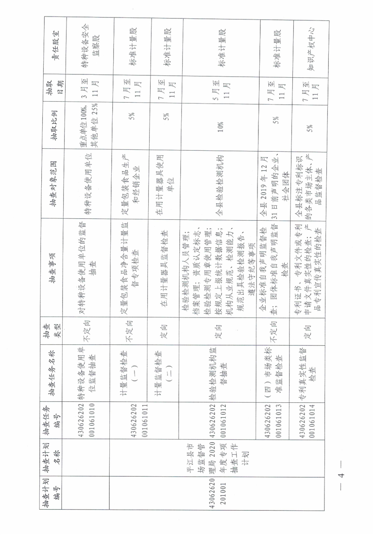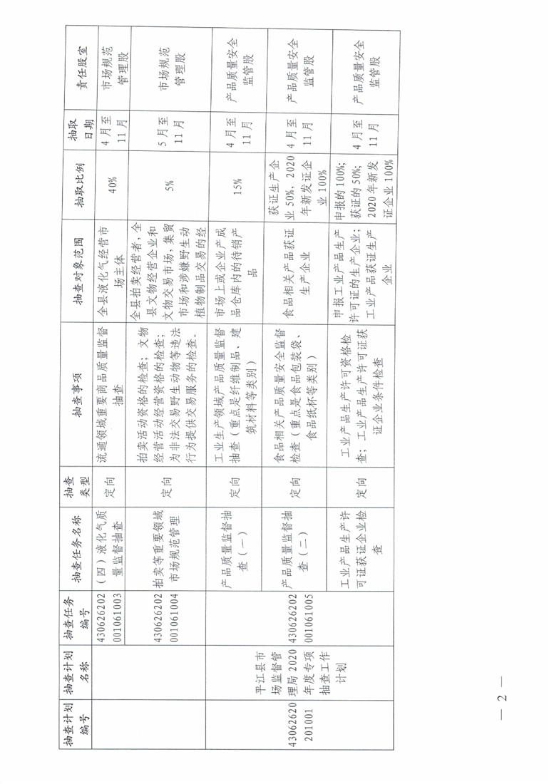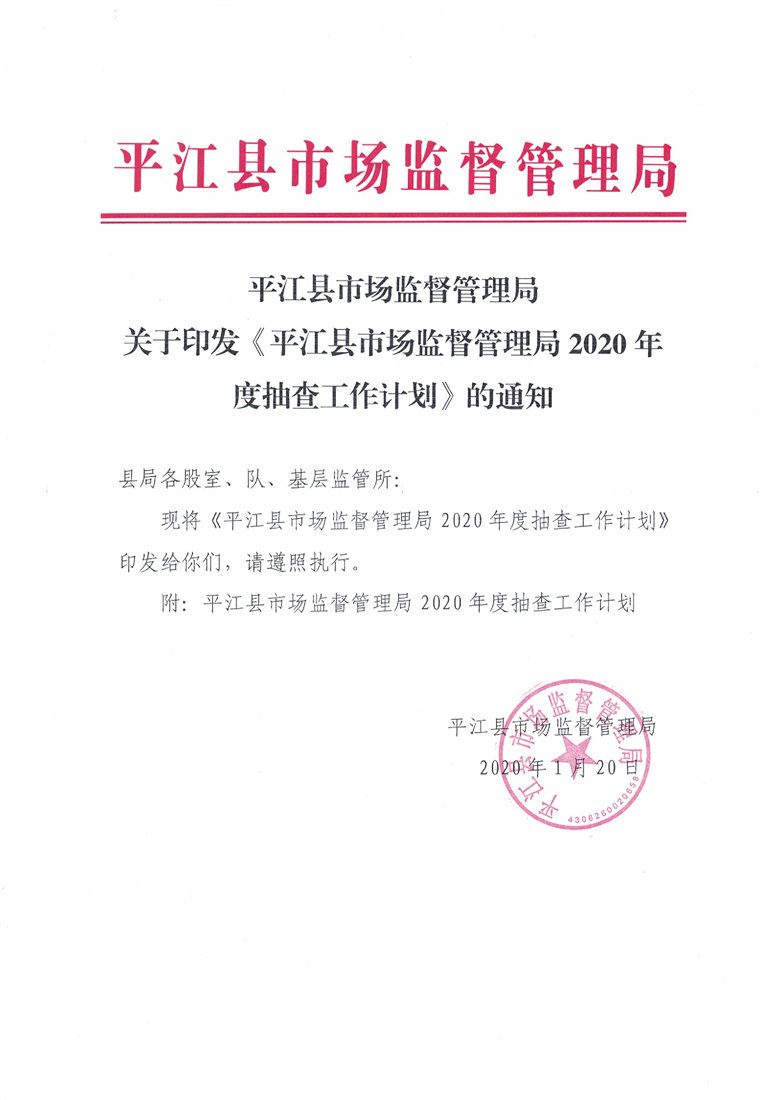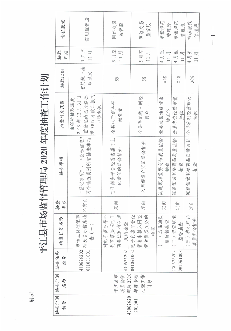2020年度平江县市场监管双随机一公开工作计划