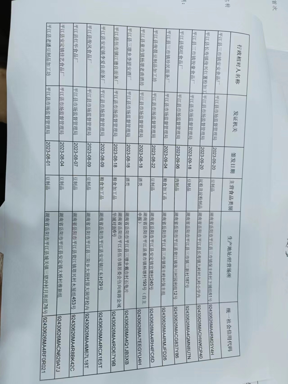 2023年第三季度食品生产加工小作坊许可发证情况