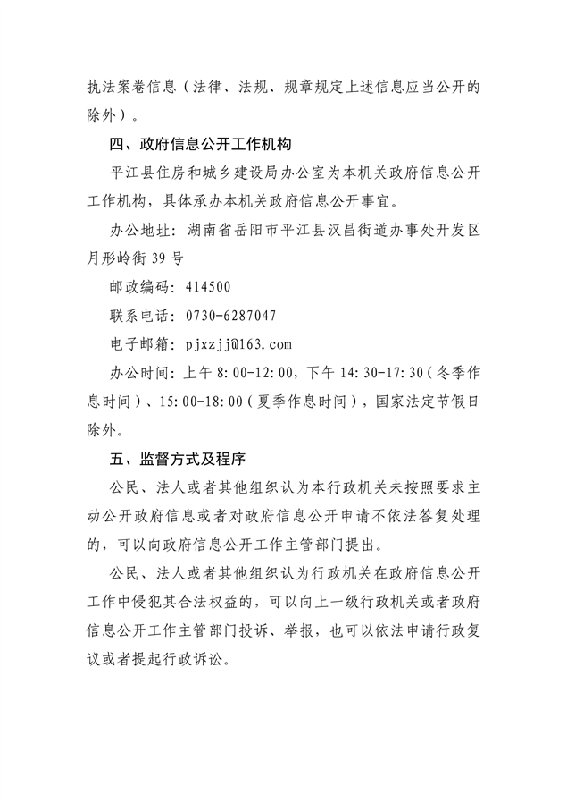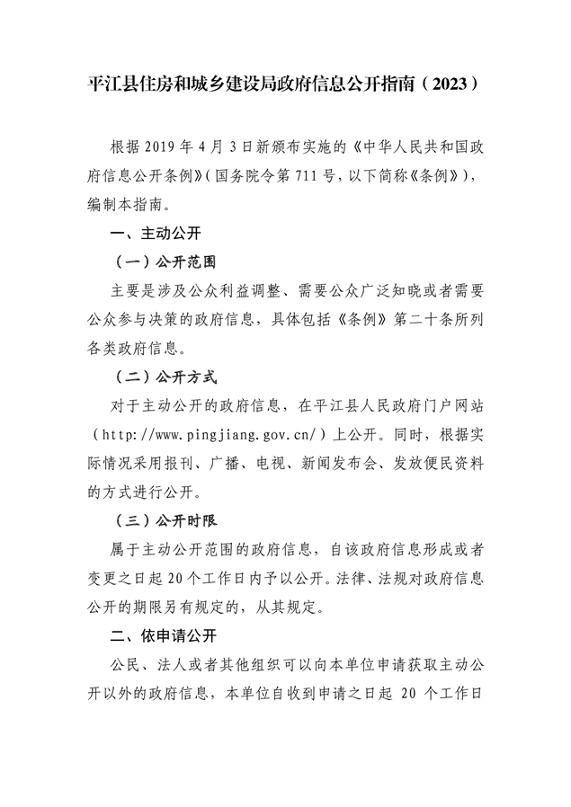 平江县住房和城乡建设局政府信息公开指南(2023)