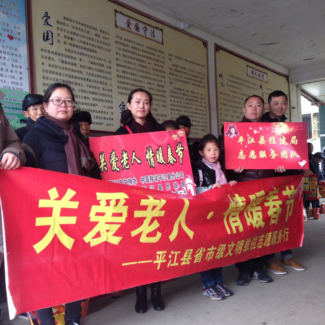 为加强干部职工思想道德建设,弘扬中华民族尊老爱幼的传统美德。1月18日上午,由县文明办牵头,县住建局等文明单位相关负责人来到平江县余坪敬老院开展春节送温暖活动,并为敬老院的老人们送去了米、面、油等慰问品,也送上新春的祝福。该院李院长向大家介绍了敬老院的概况及发展规划,引领大家参观了活动室、餐厅。大家纷纷进入老人的房间与老人们促膝谈心、嘘寒问暖。