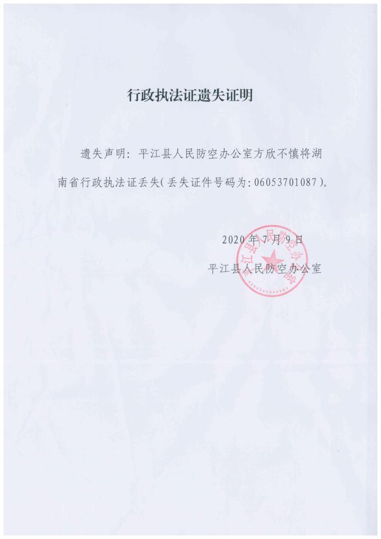 行政执法证遗失证明