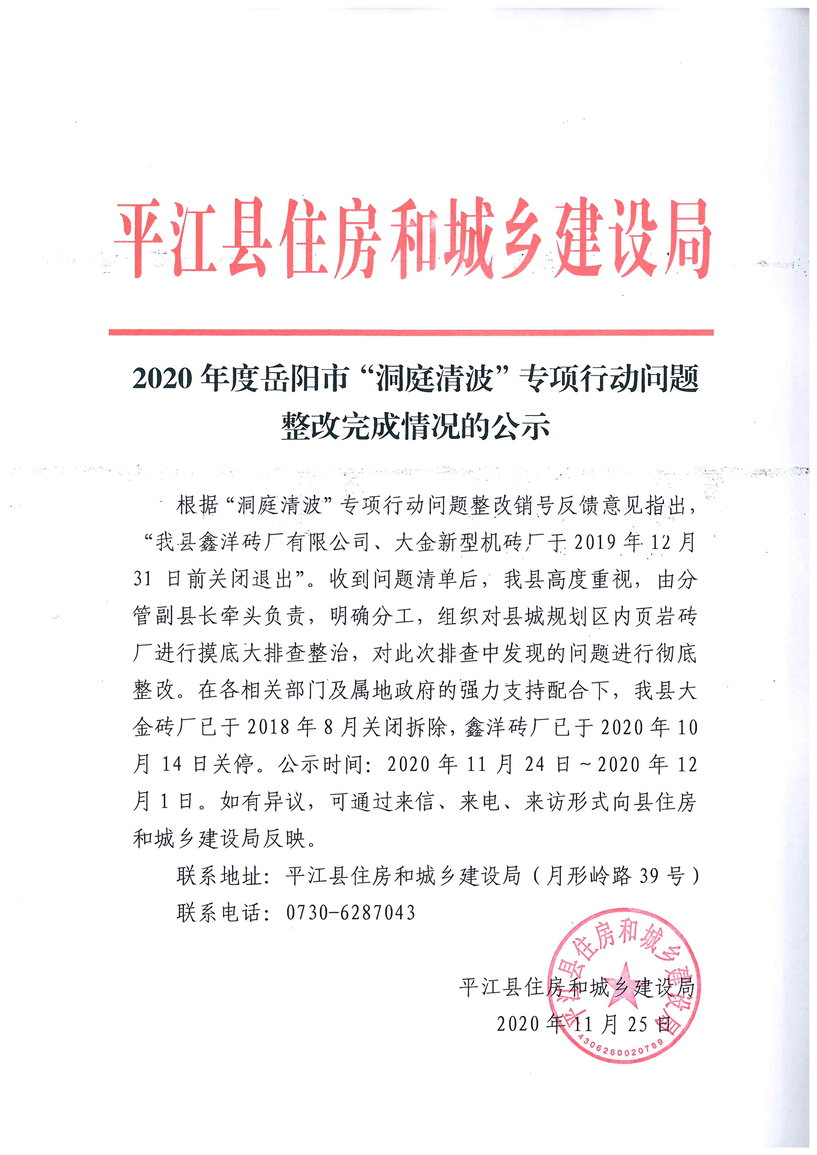2020年度岳阳市“洞庭清波”专项行动问题整改完成情况的公示