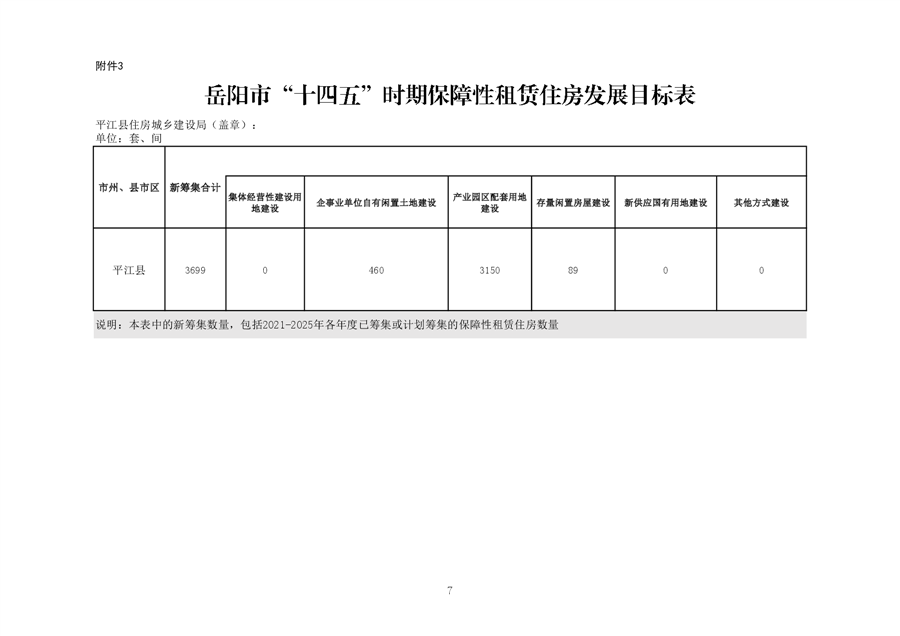平江县“十四五”时期有关城市保障性租赁住房发展目标表