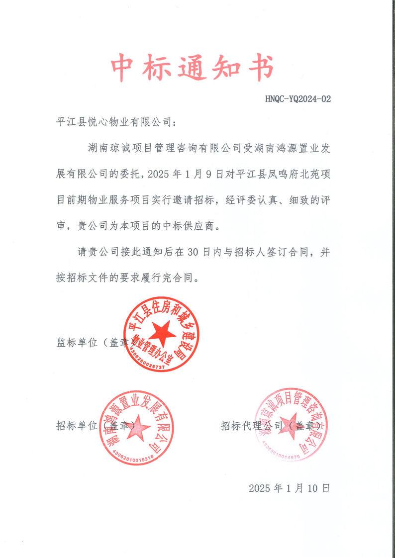 中标通知书(鸿源置业)