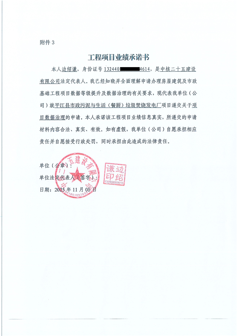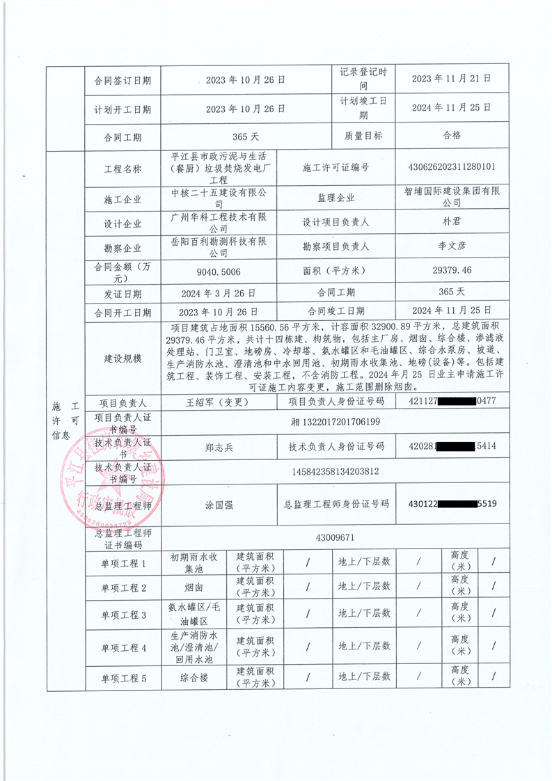 建筑市场监管公共服务平台项目业绩信息审核表-平江县市政污泥与生活(餐厨)垃圾焚烧发电厂