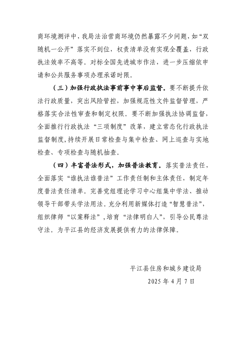 平江县住房和城乡建设局2024年度法治政府建设工作报告