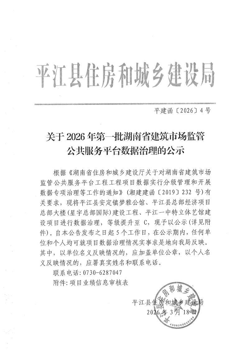 关于2026年第一批湖南省建筑市场监管公共服务平台数据治理的公示