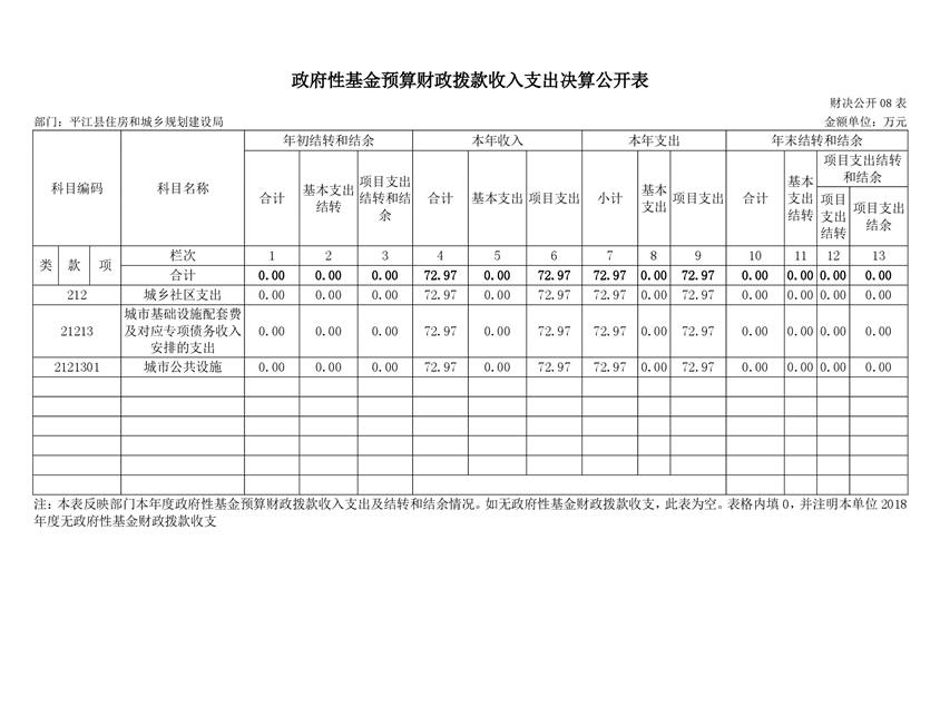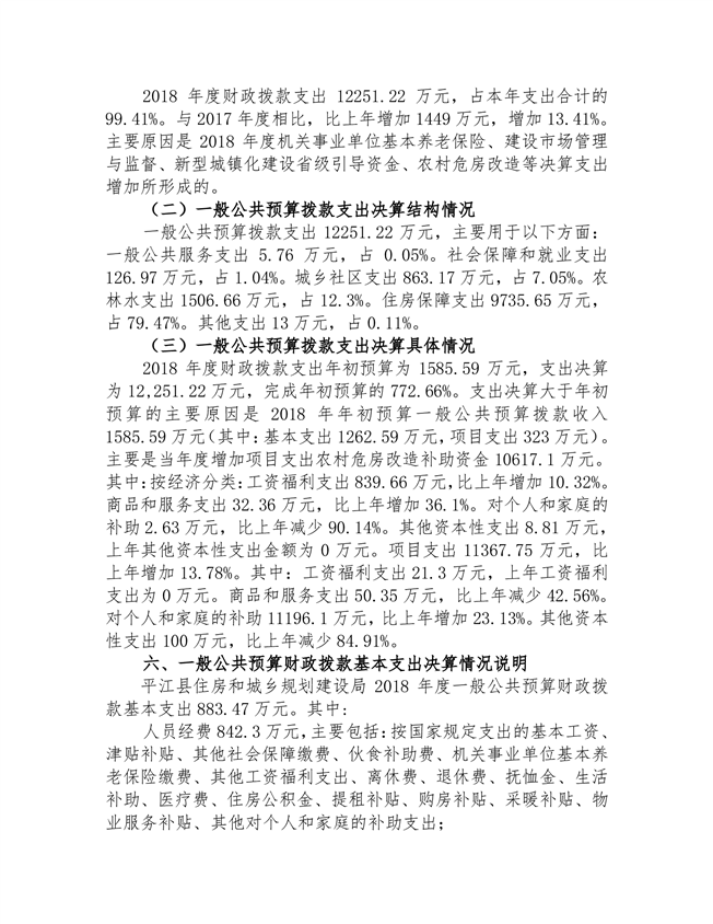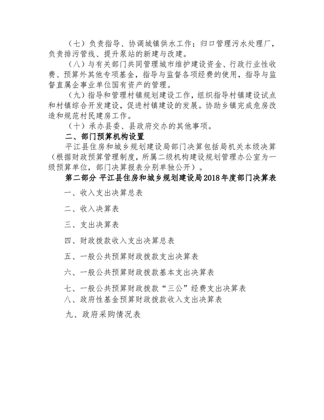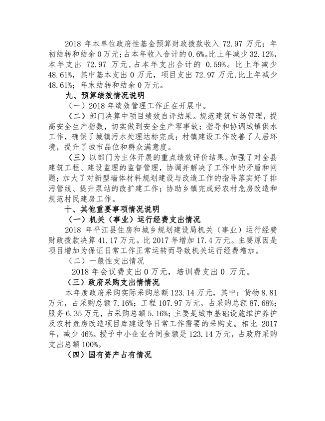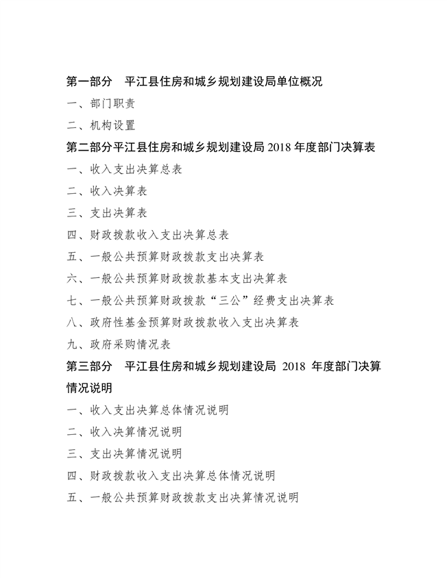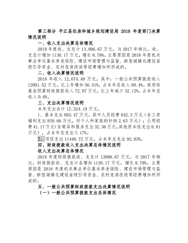 平江县住房和城乡规划建设局2018年度部门决算编报说明