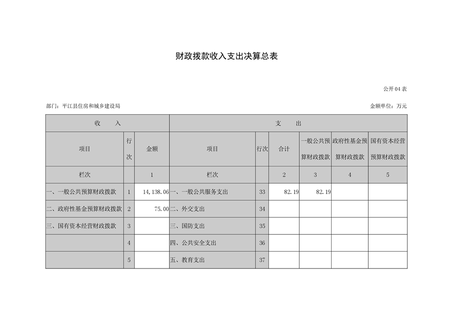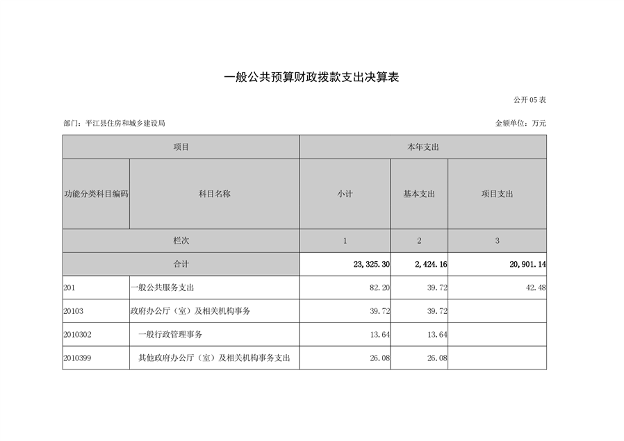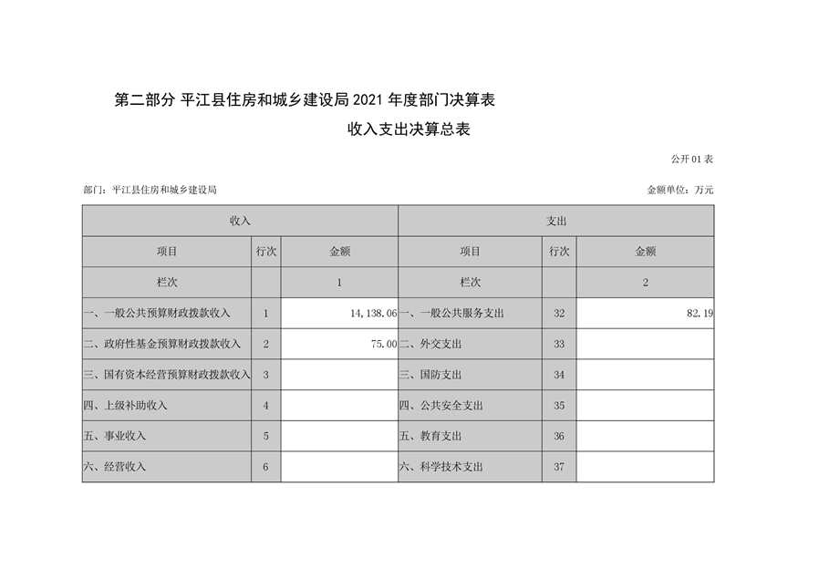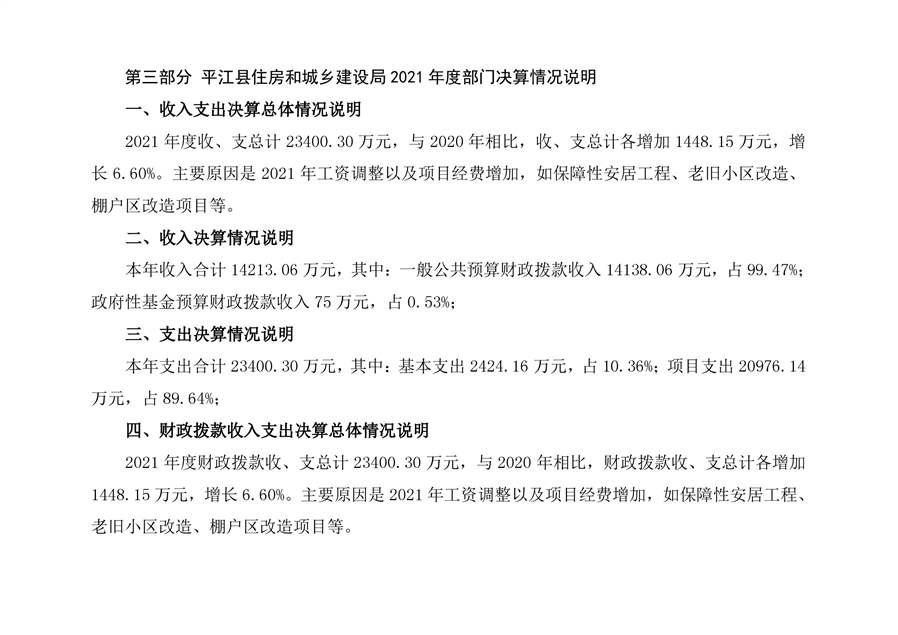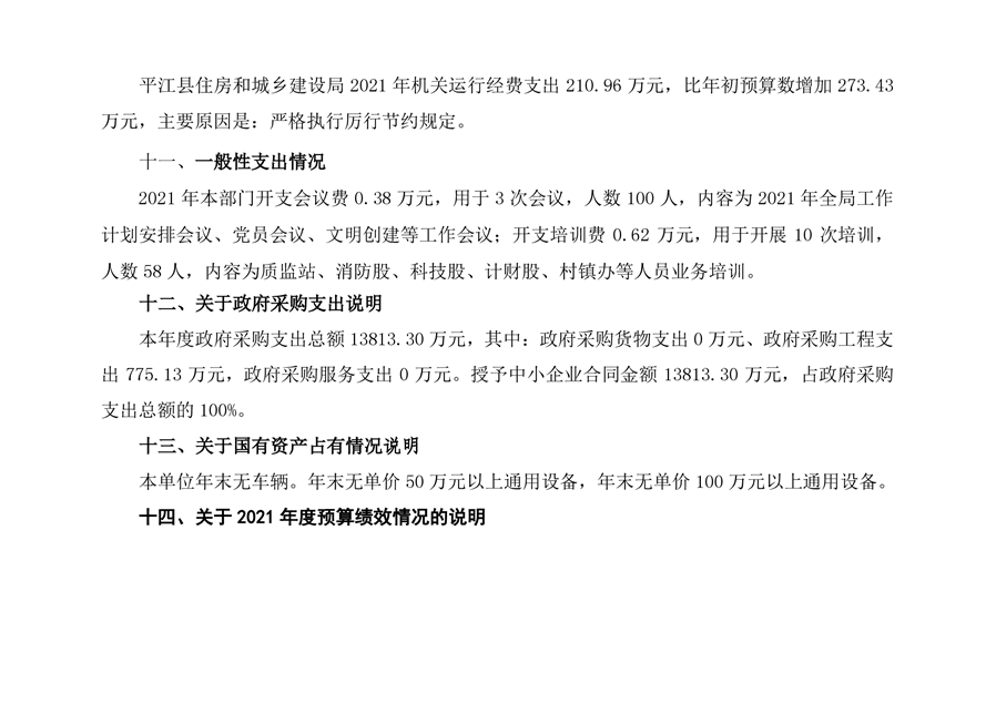 2021年度平江县住房和城乡建设局部门决算