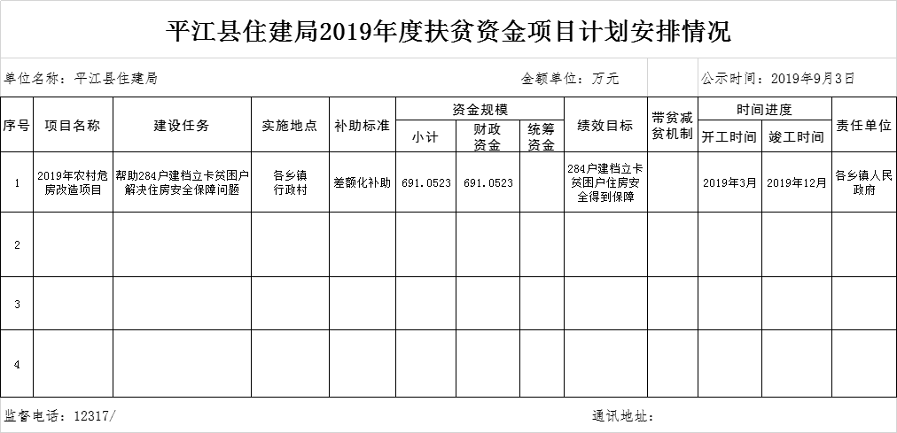 平江县住建局2019年度扶贫资金项目计划安排情况(2)