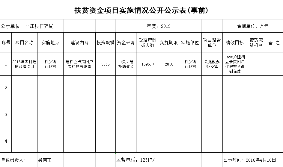 2018年度扶贫资金项目实施情况公开公示表(事前)