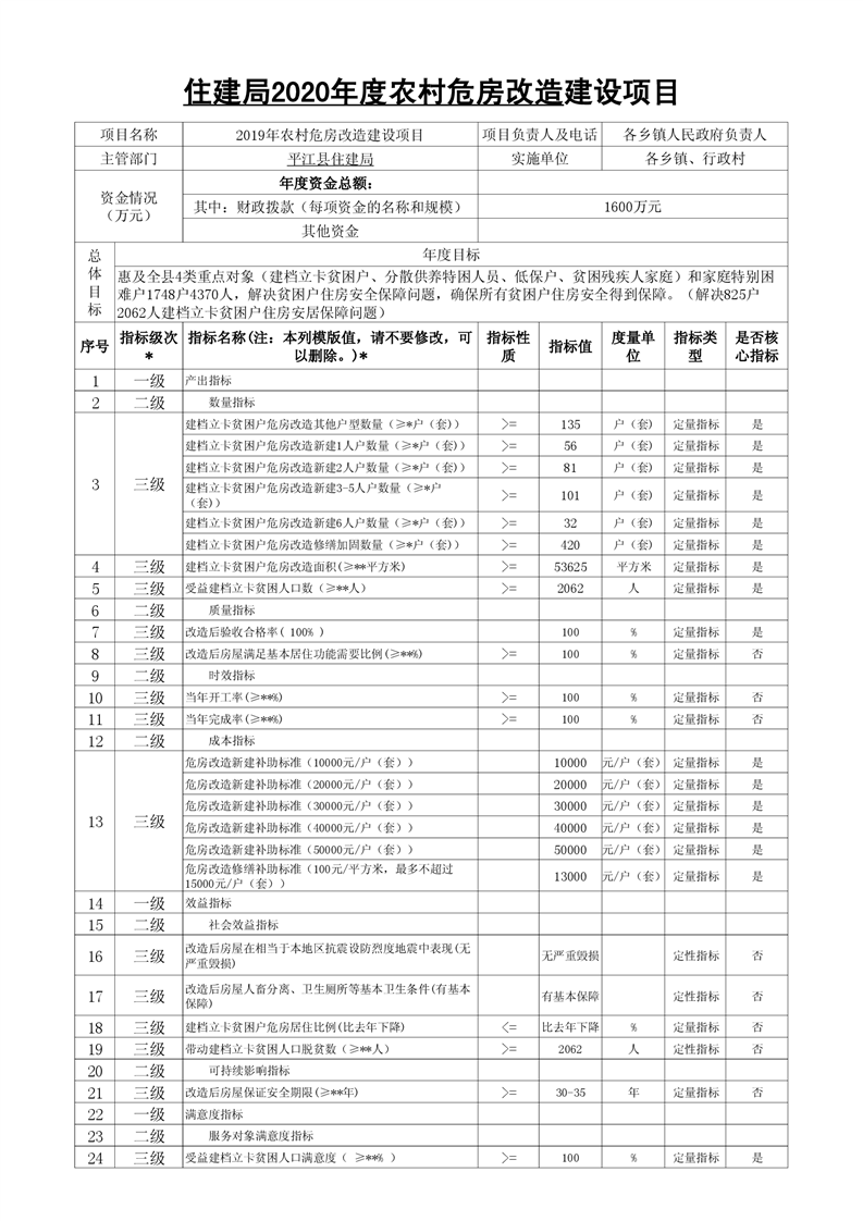 住建局2020年度农村危房改造建设项目