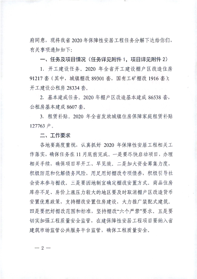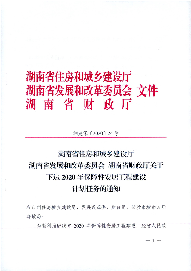 (湘建保[2020]24号)关于下达2020年保障性安居工程建设计划任务的通知