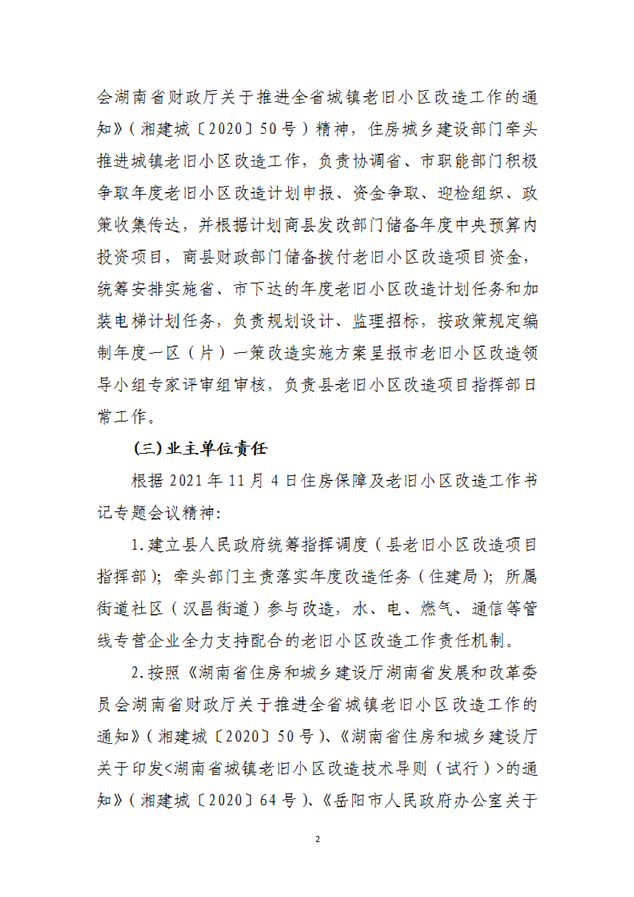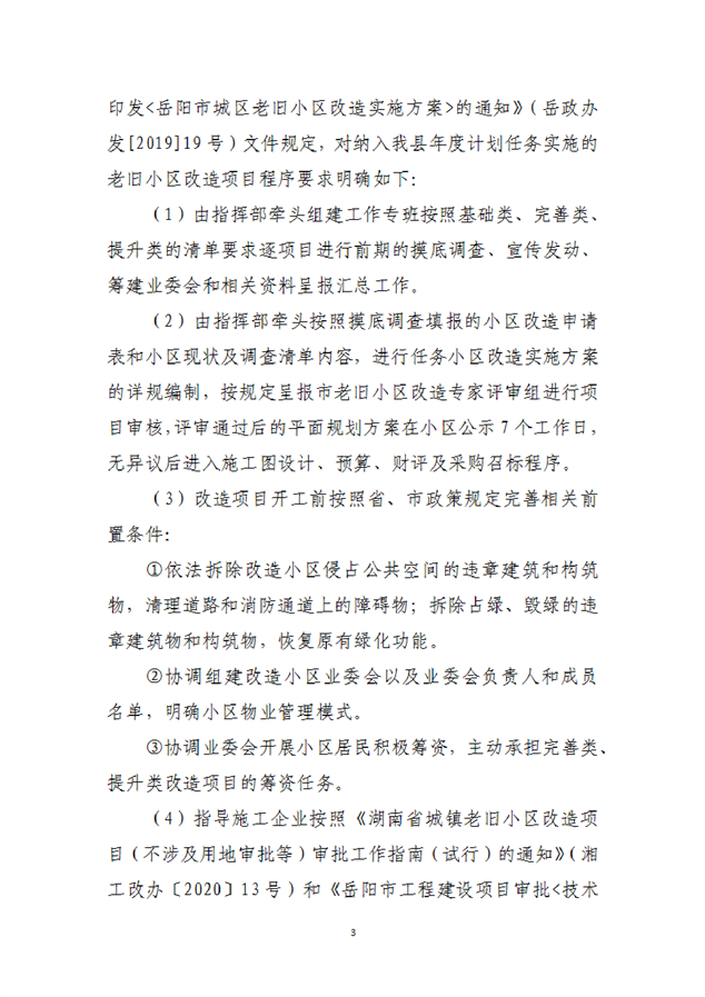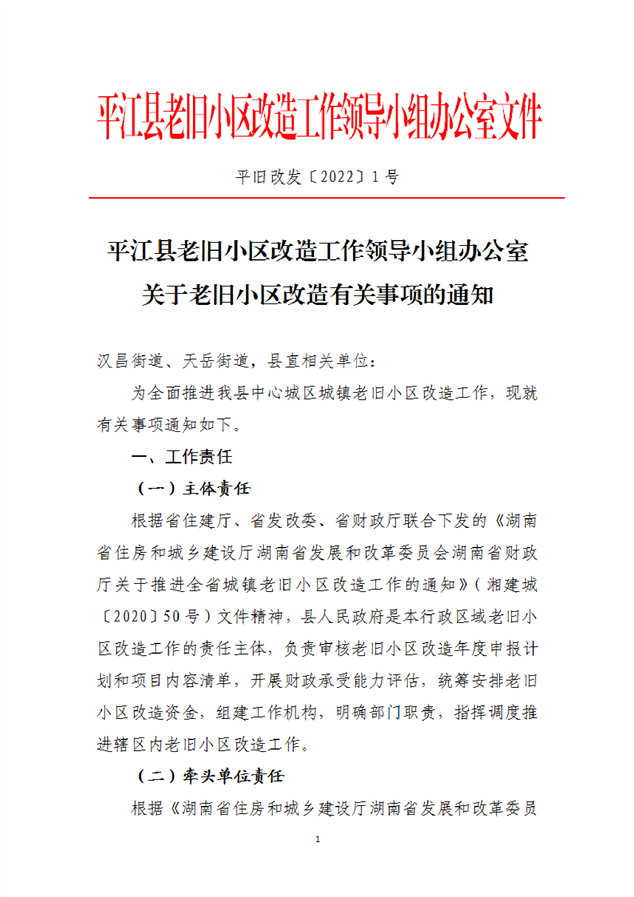 《平江县老旧小区改造工作领导小组办公室 关于老旧小区改造有关事项的通知》(平旧改发[2022]1号 )