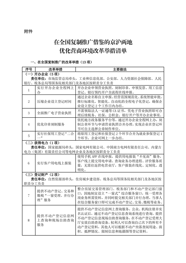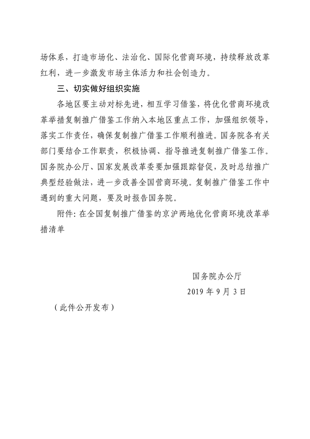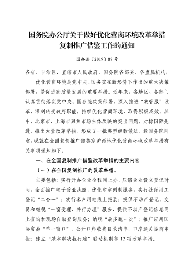 国务院办公厅关于做好优化营商环境改革举措复制推广借鉴工作的通知(国办函[2019]89号)