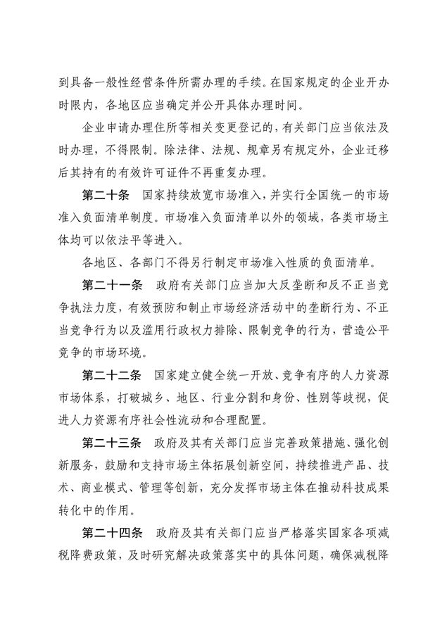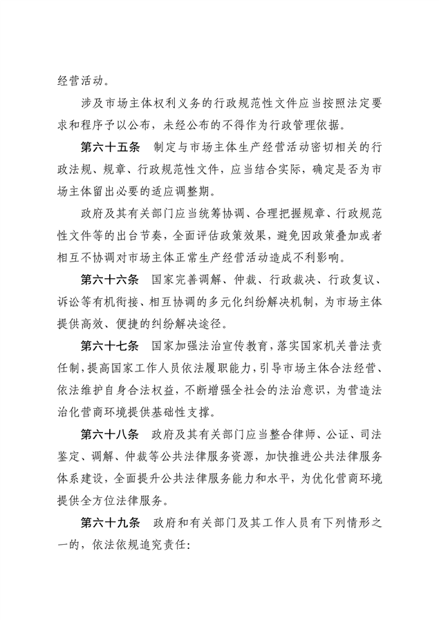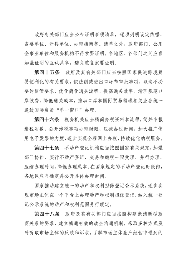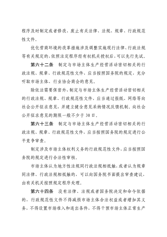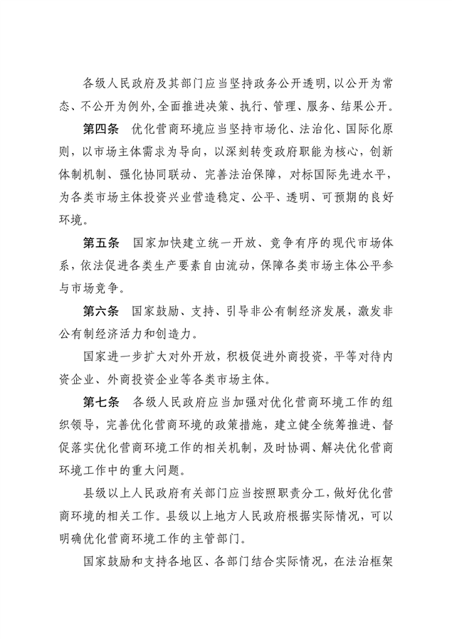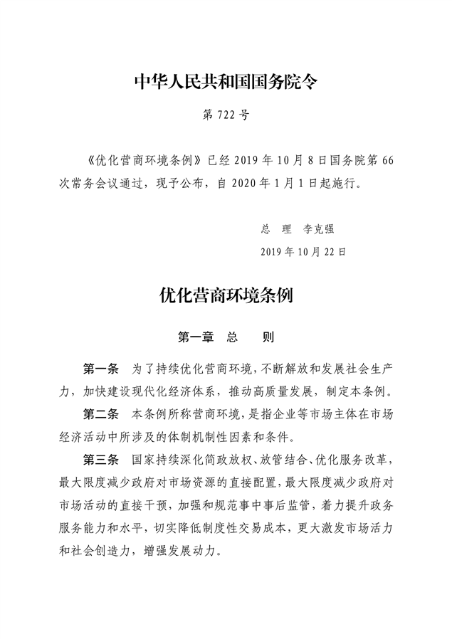 《优化营商环境条例》(中华人民共和国国务院令第722号)