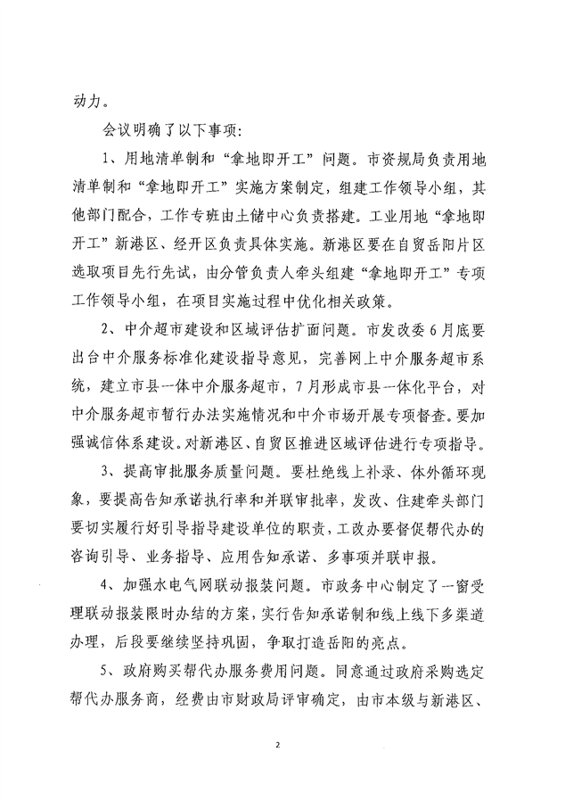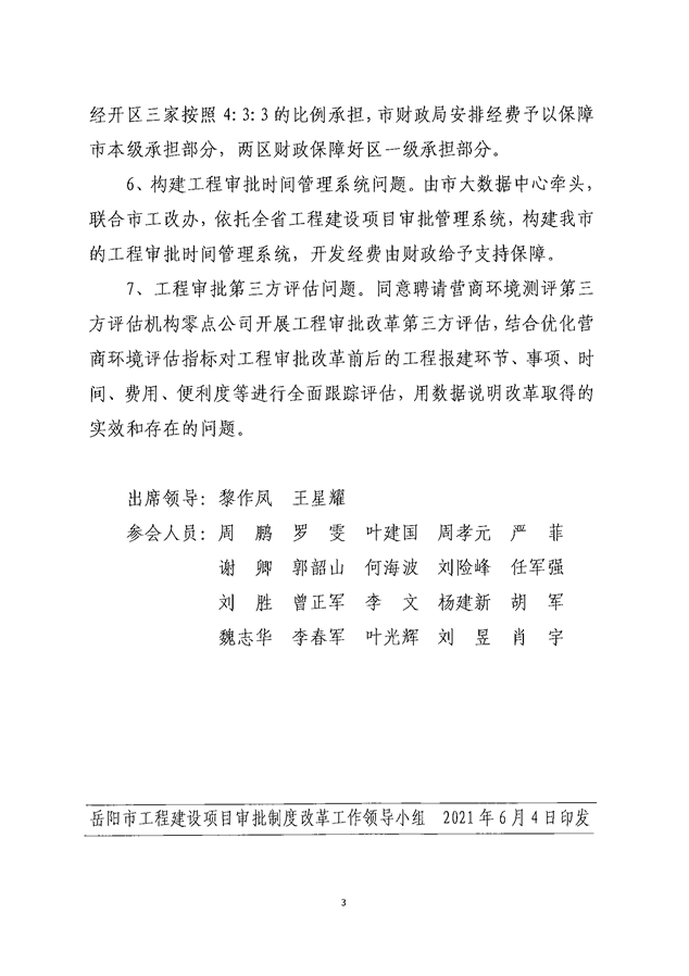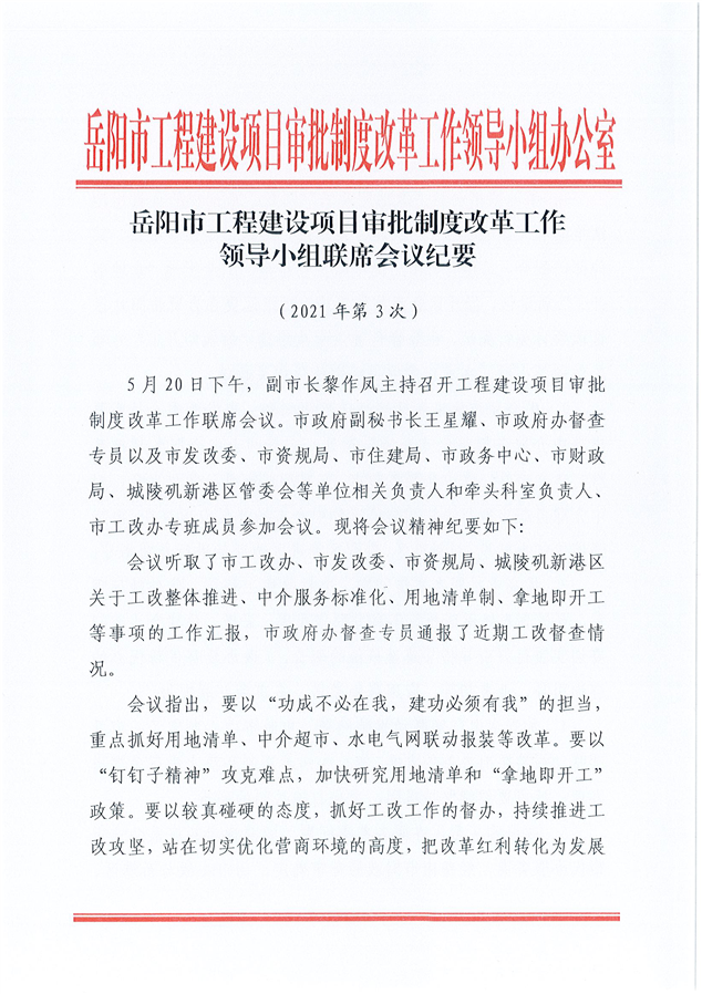 岳阳市工程建设项目审批制度改革工作领导小组联席会议纪要(2021年第3次)