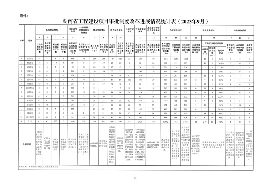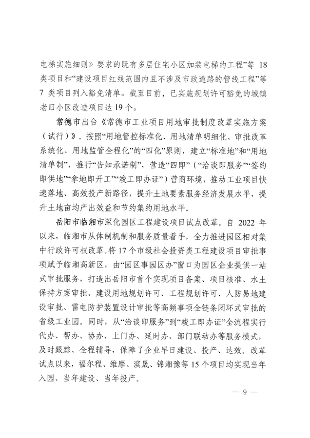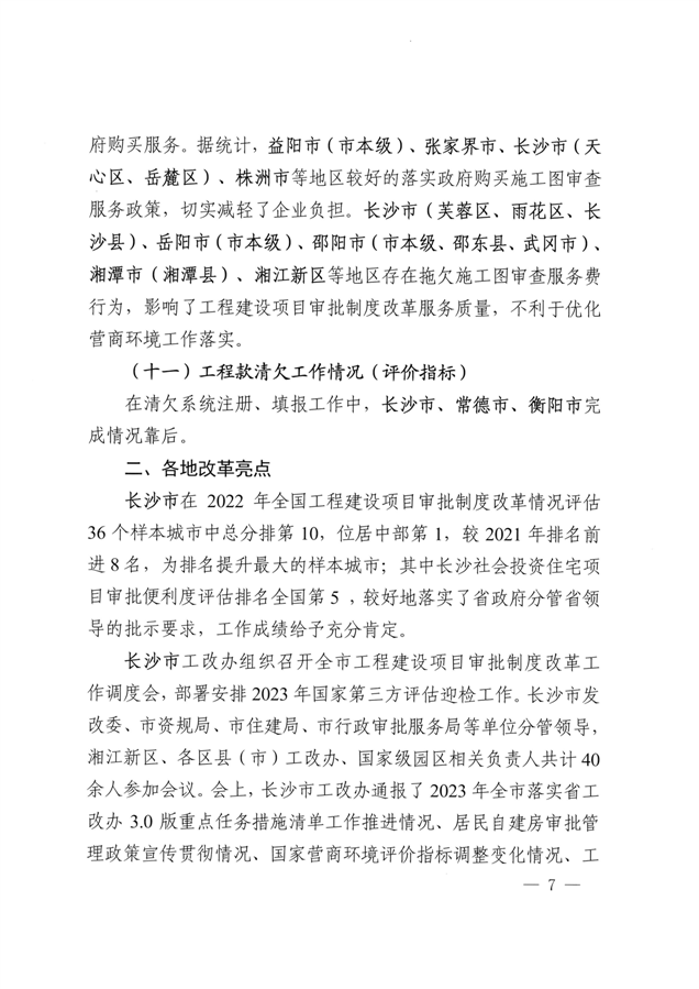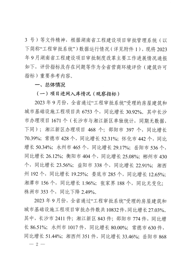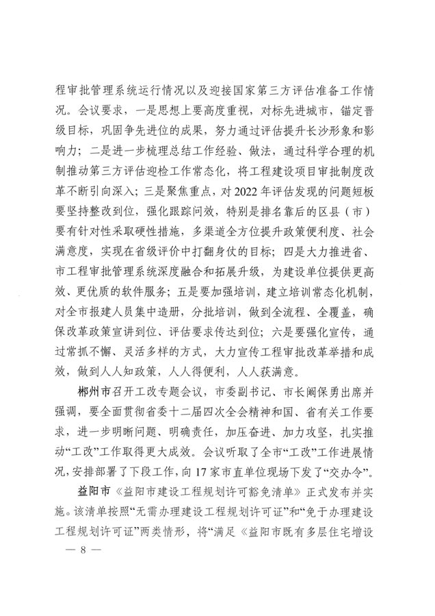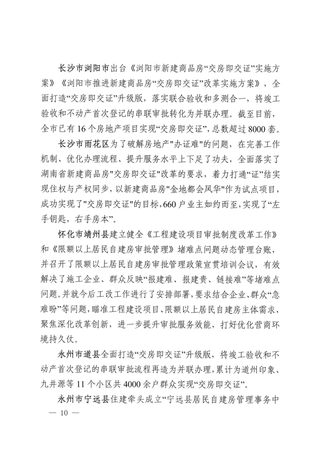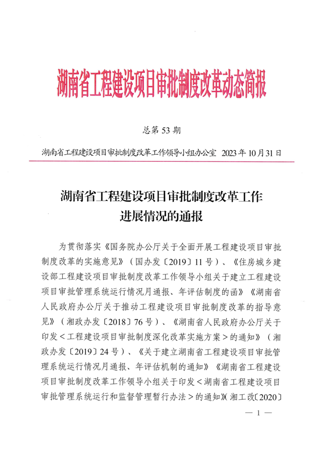 湖南省工程建设项目审批制度改革工作进展情况的通报(总第53期)