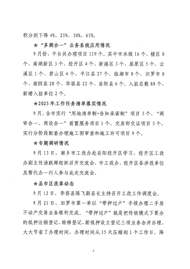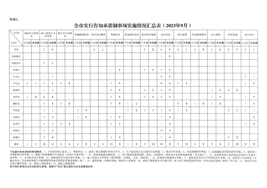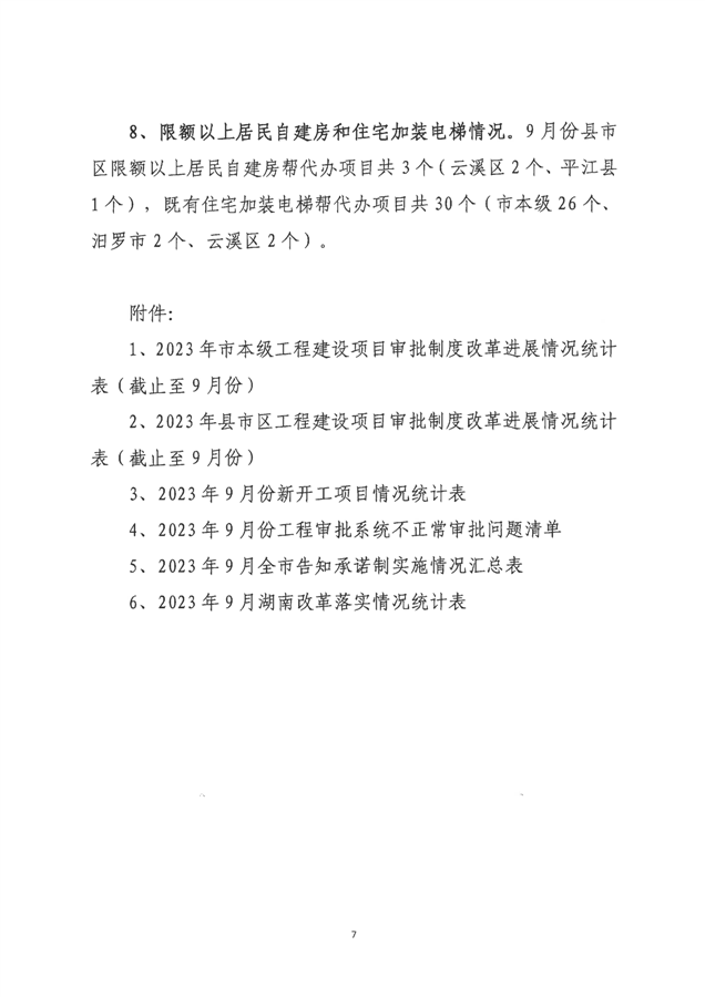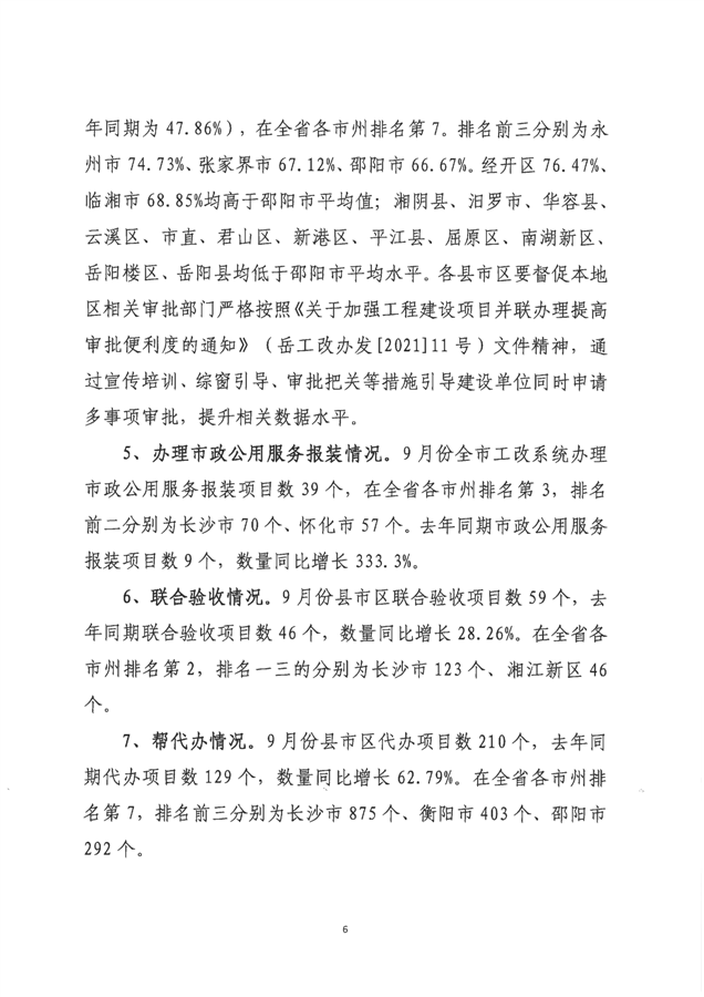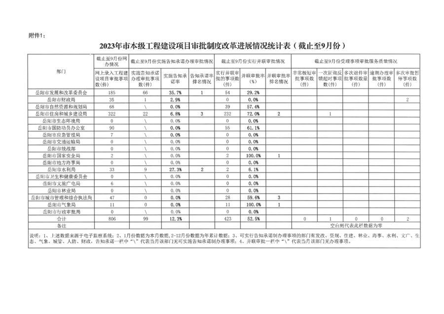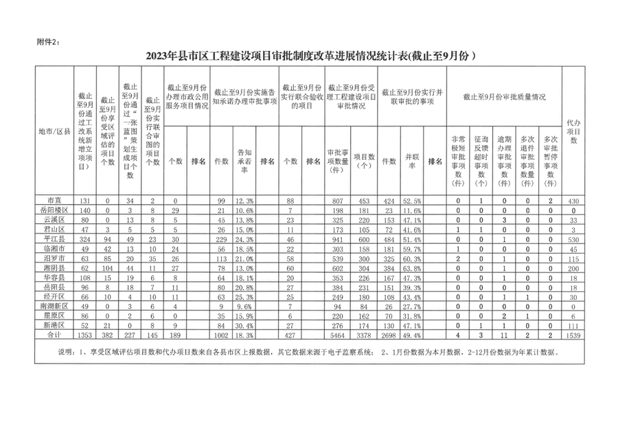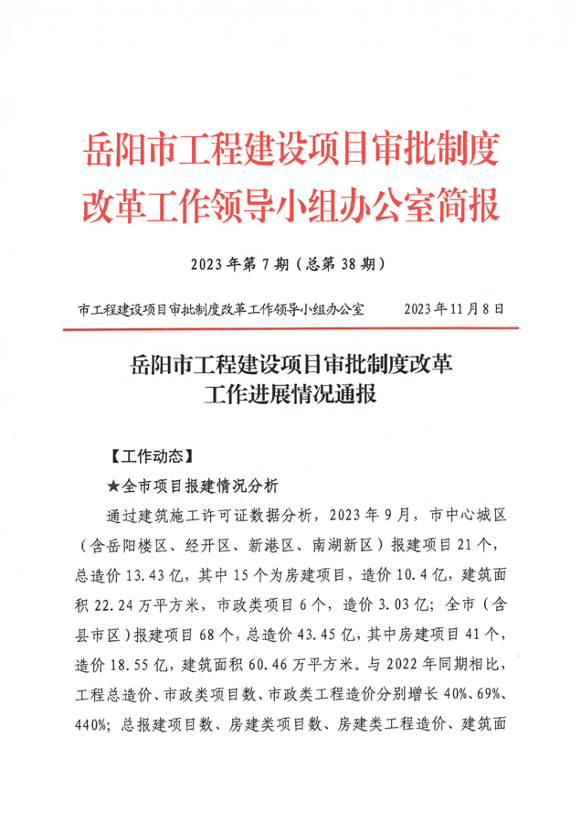 岳阳市工程建设项目审批制度改革工作进展情况通报(2023年第七期)
