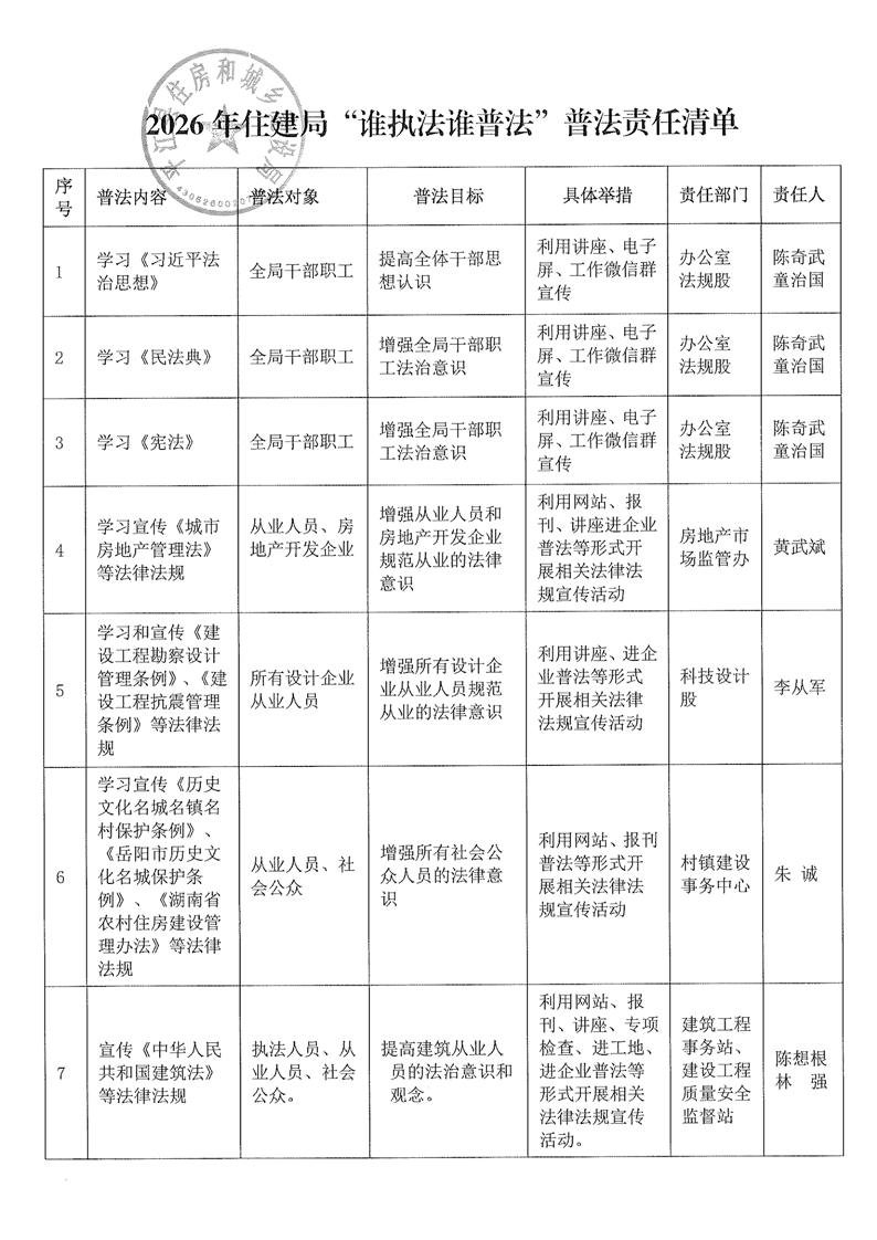 住建局“谁执法谁普法”普法责任清单(2026)