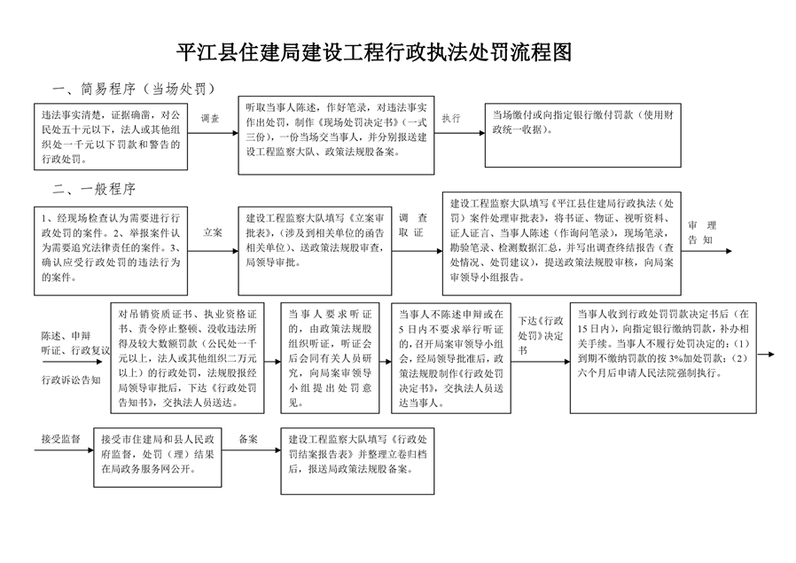 平江县住建局建设工程行政执法处罚流程图
