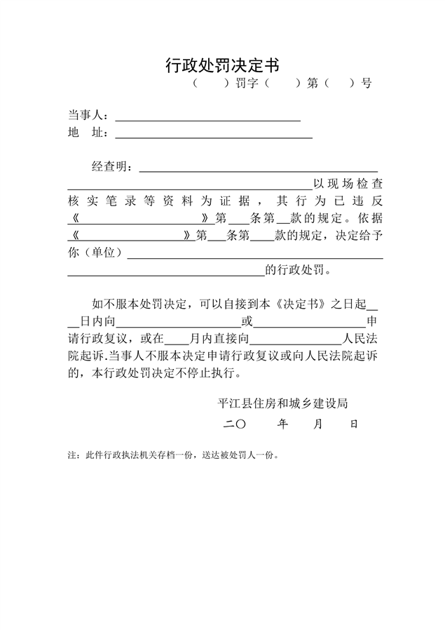 行政执法文书样本