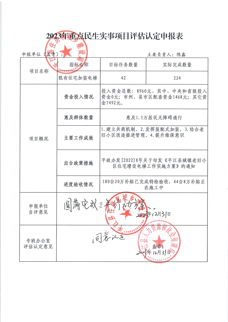 2023年重点民生实事项目评估认定申报表