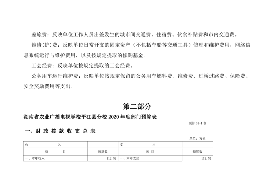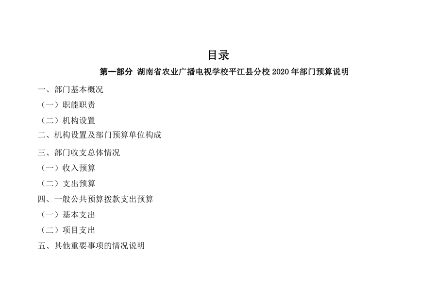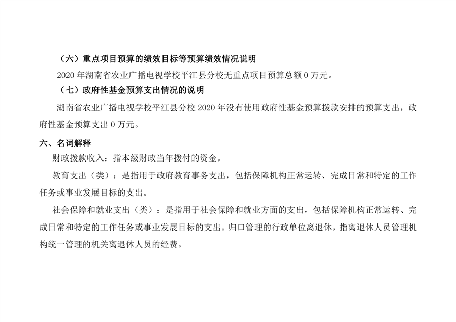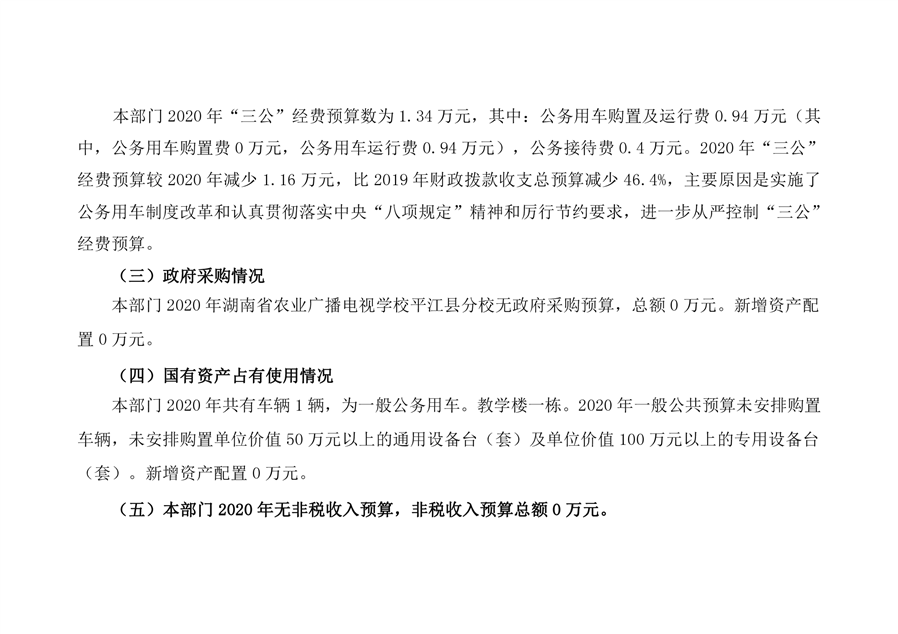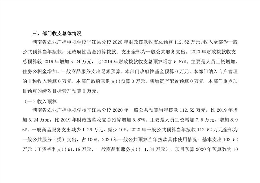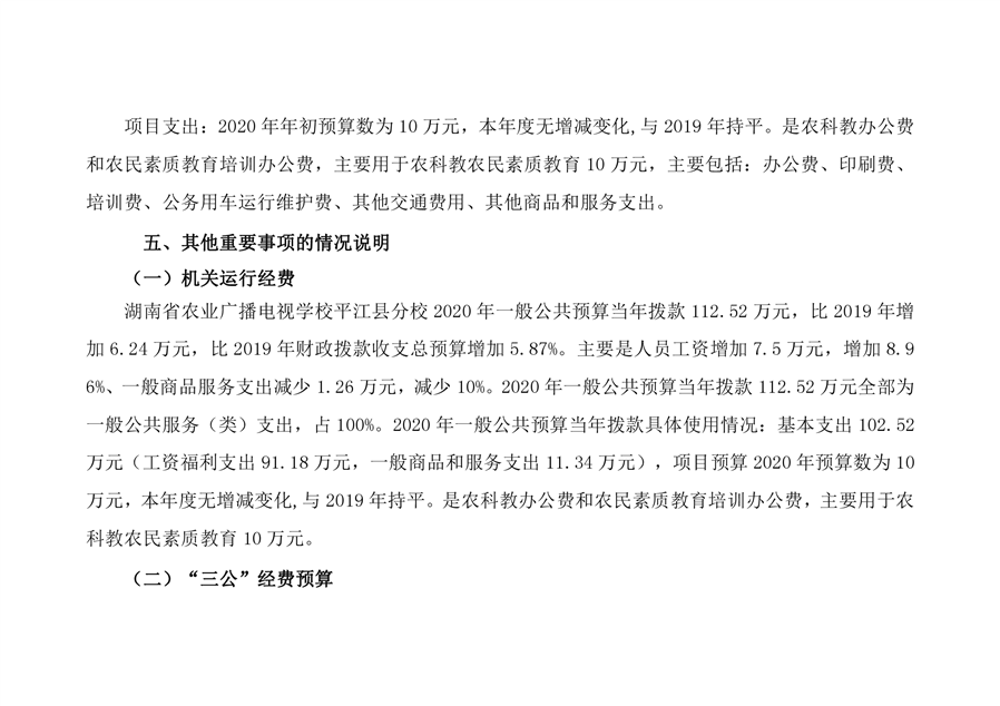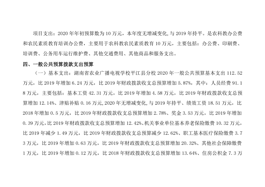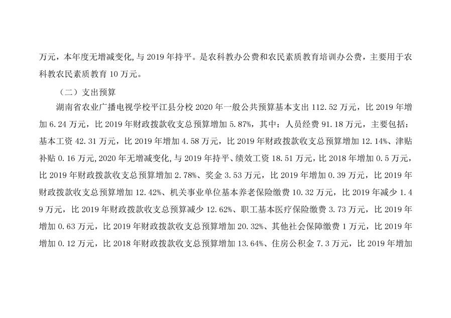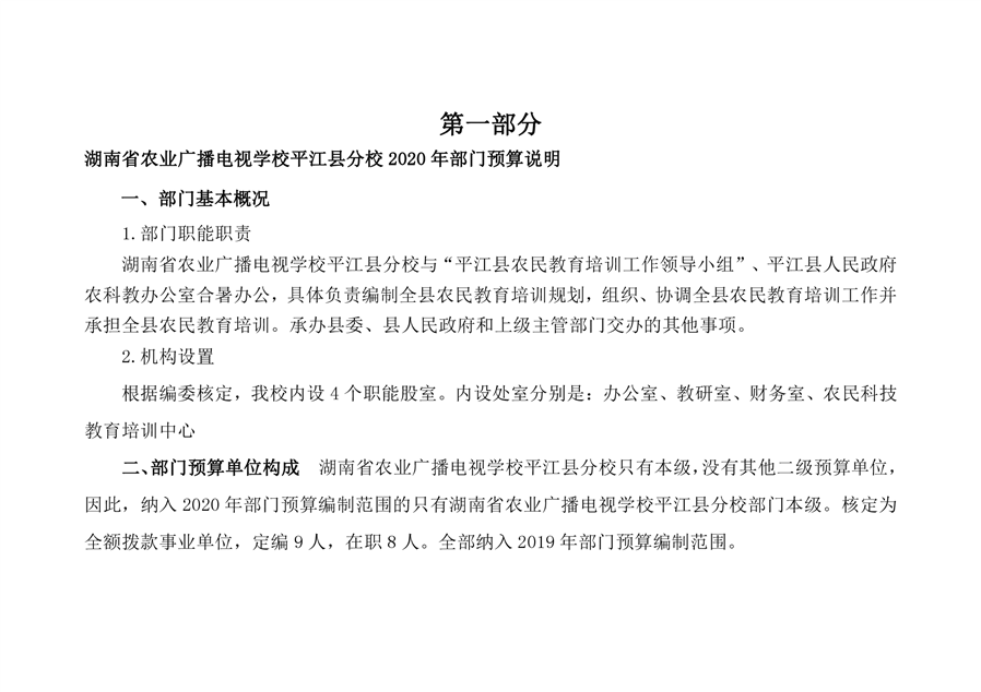湖南省农业广播电视学校平江分校2020年部门预算编报说明