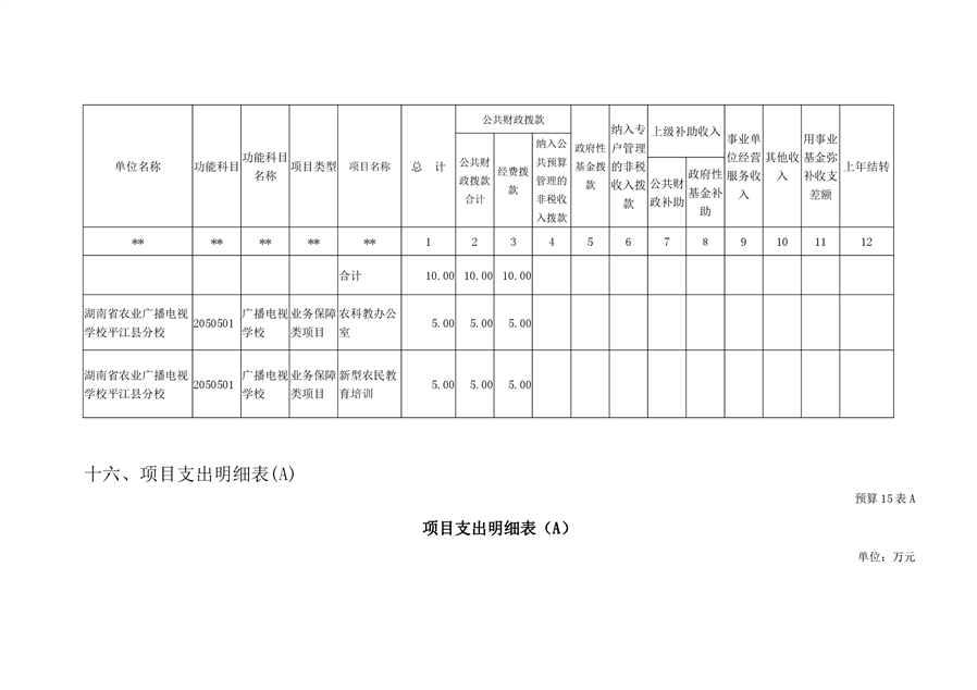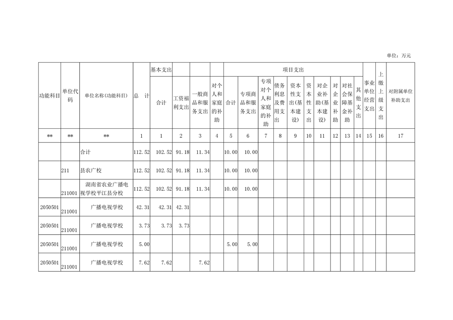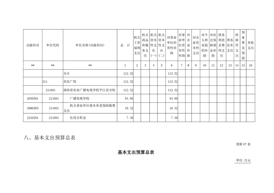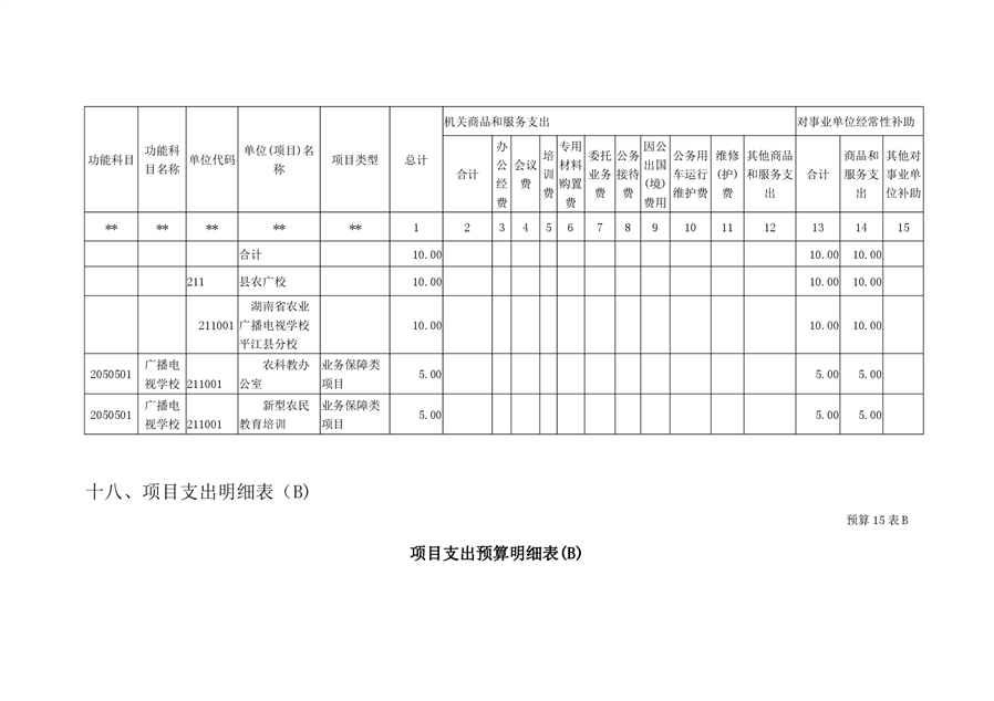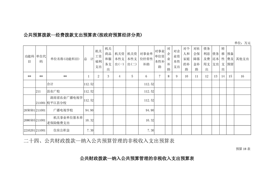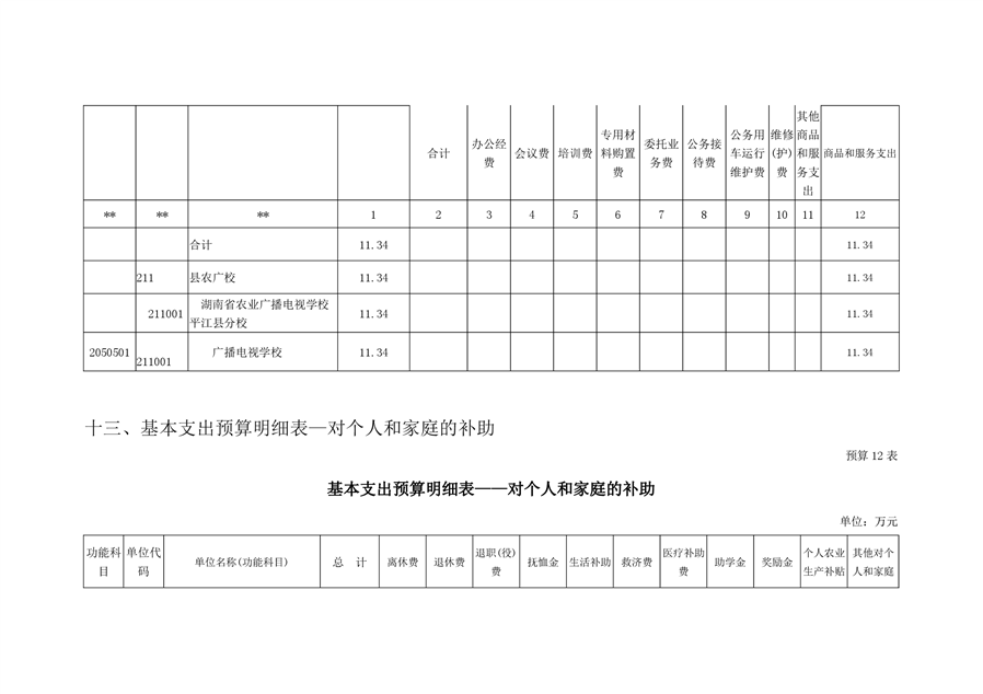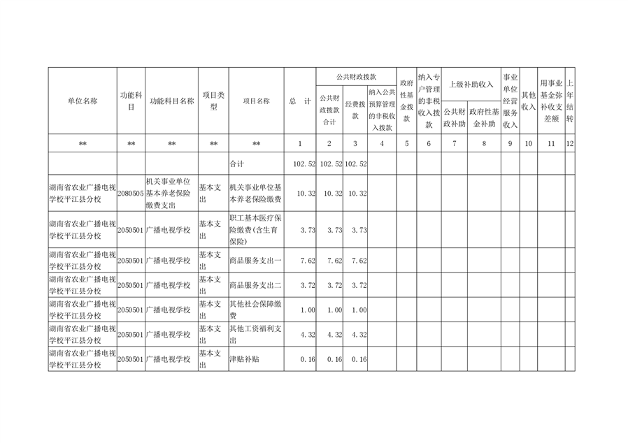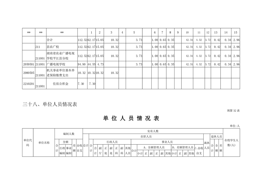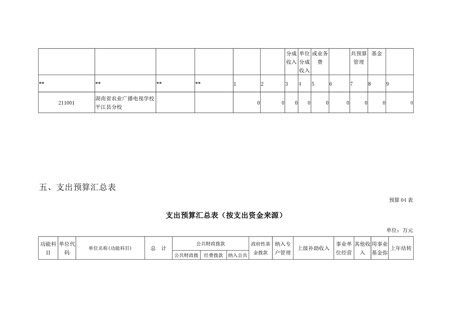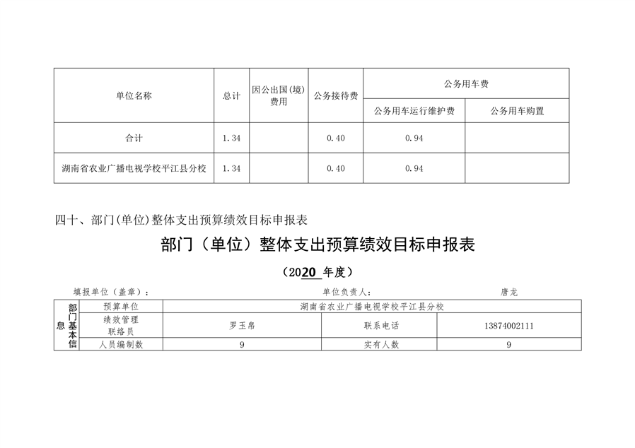 湖南省农业广播电视学校平江分校2020年部门预算编报说明