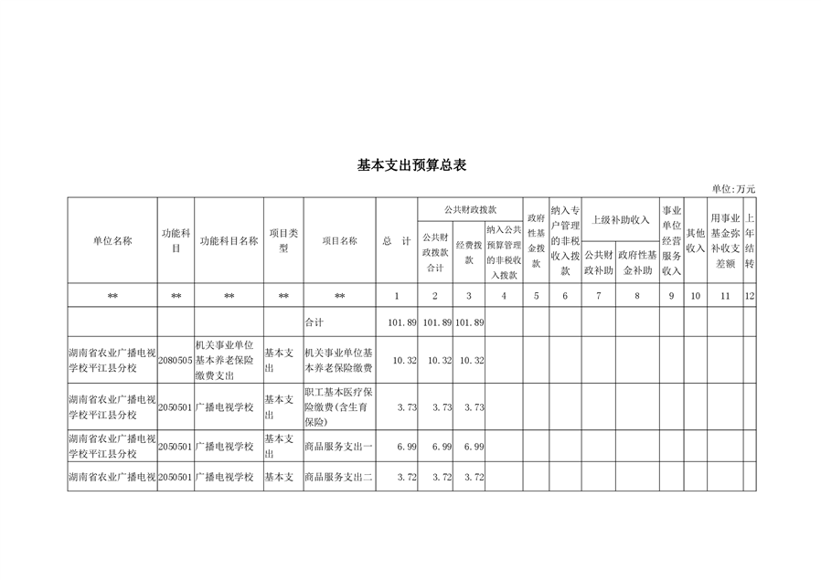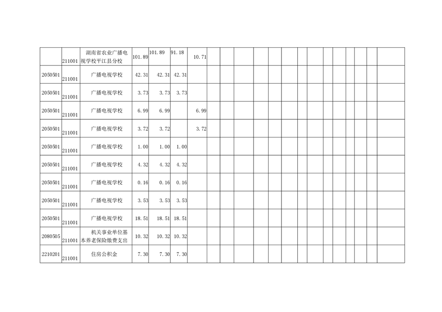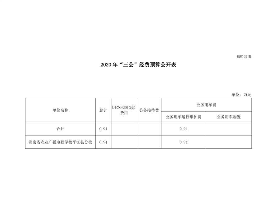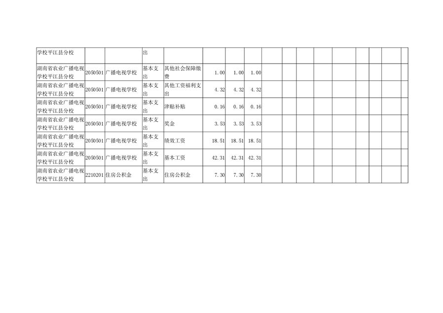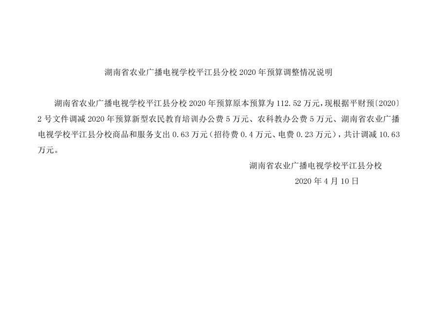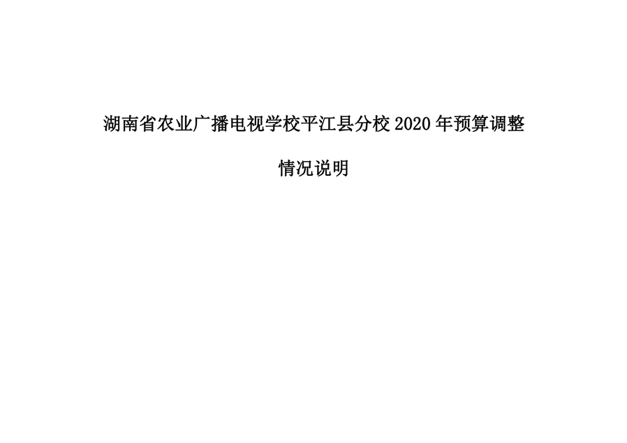 湖南省农业广播电视学校平江分校2020年预算调整