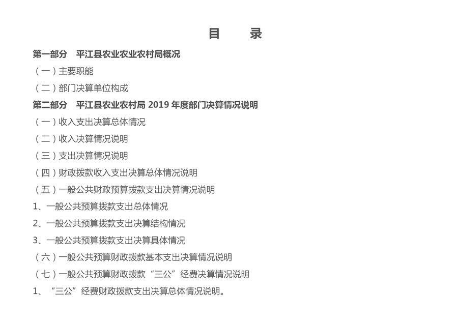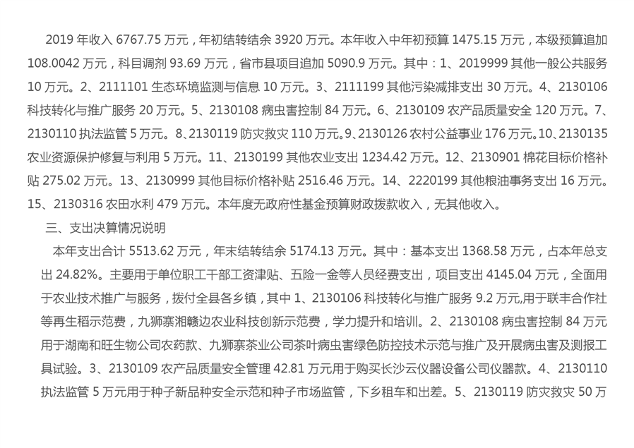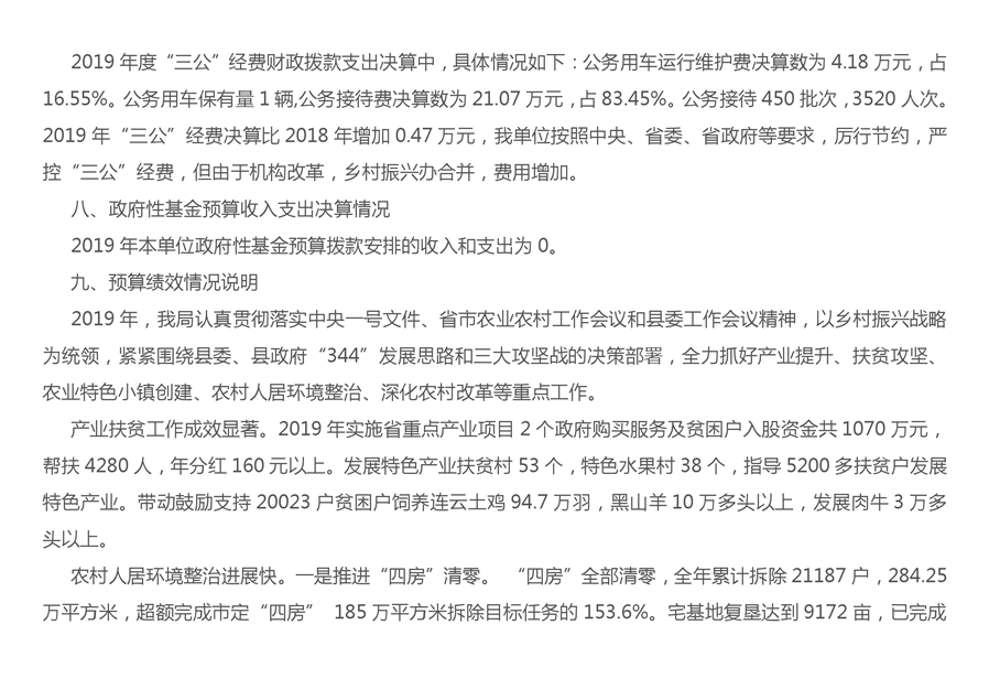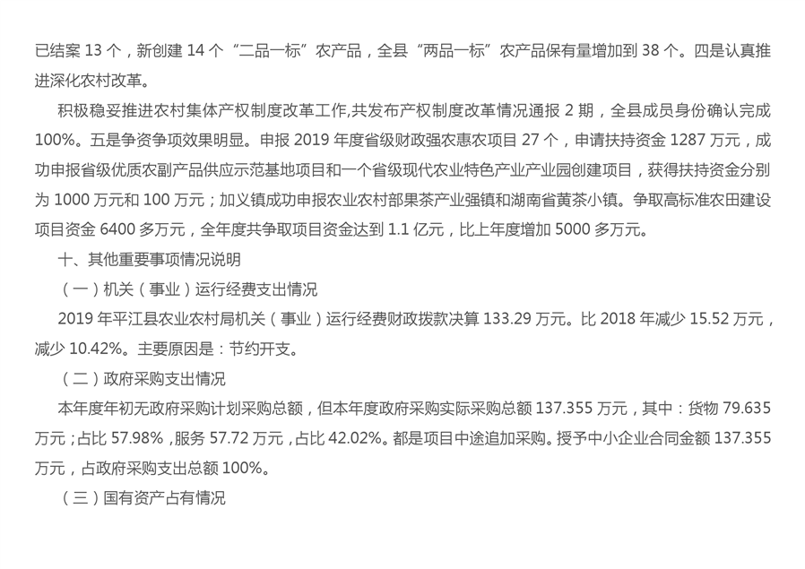 平江县农业农村局2019年度部门决算