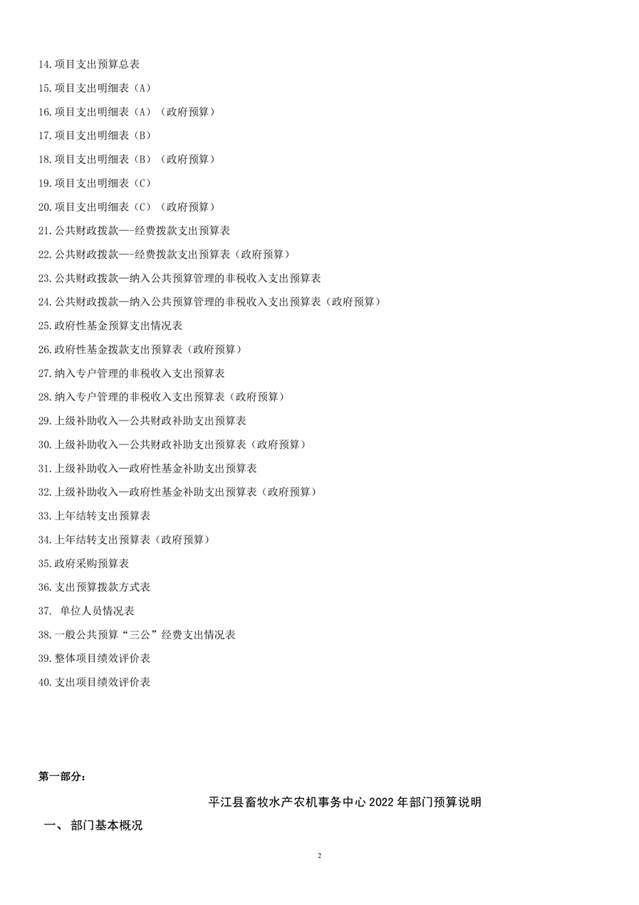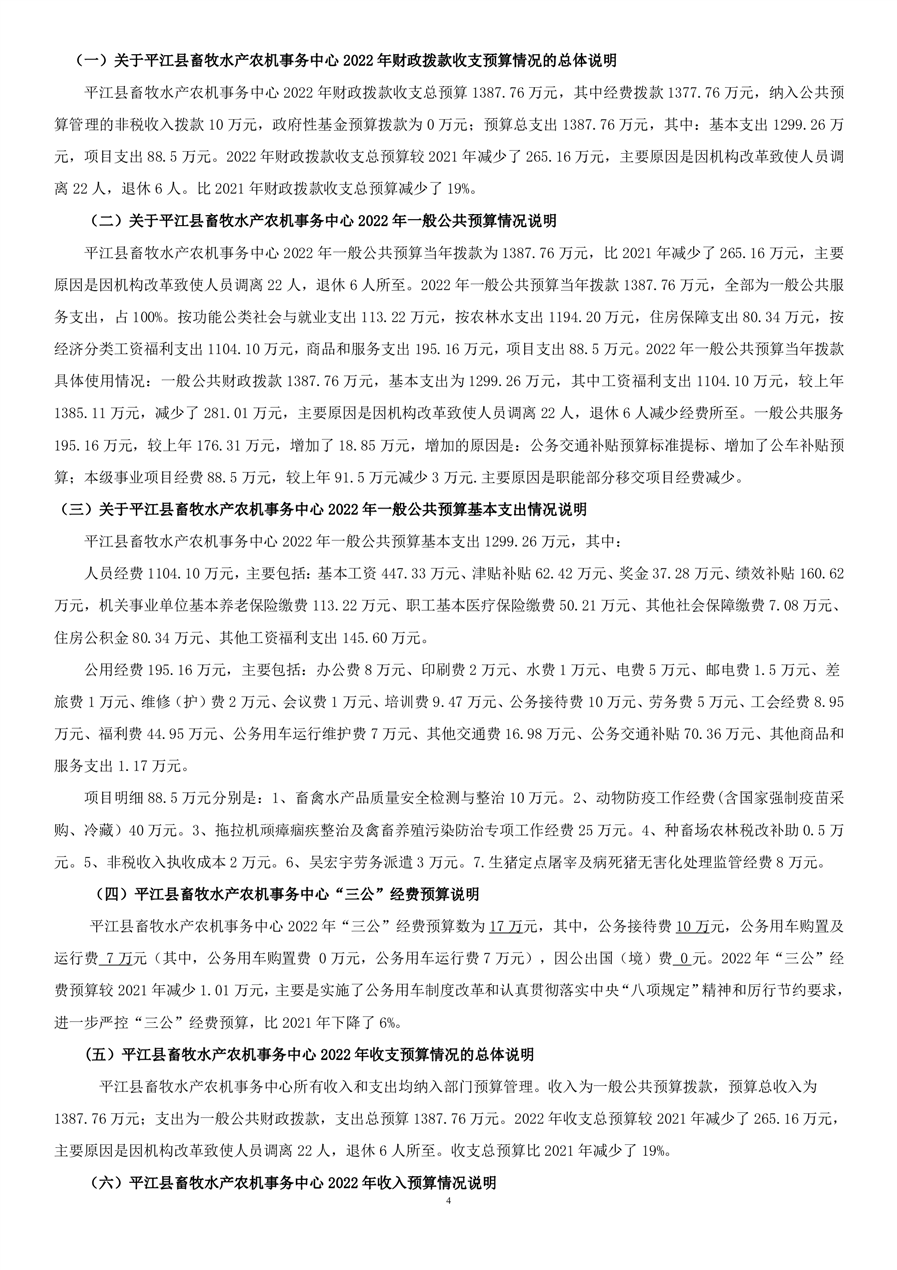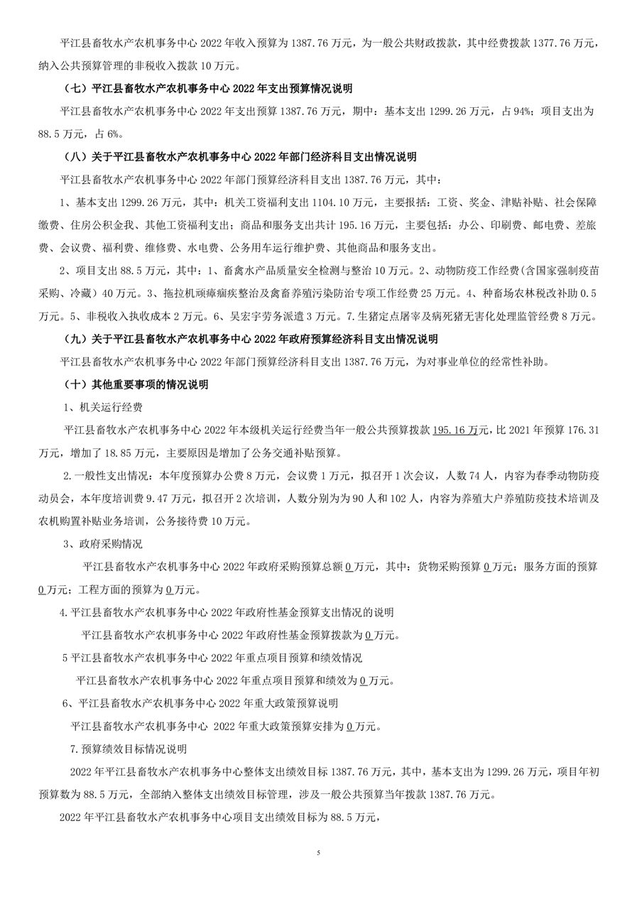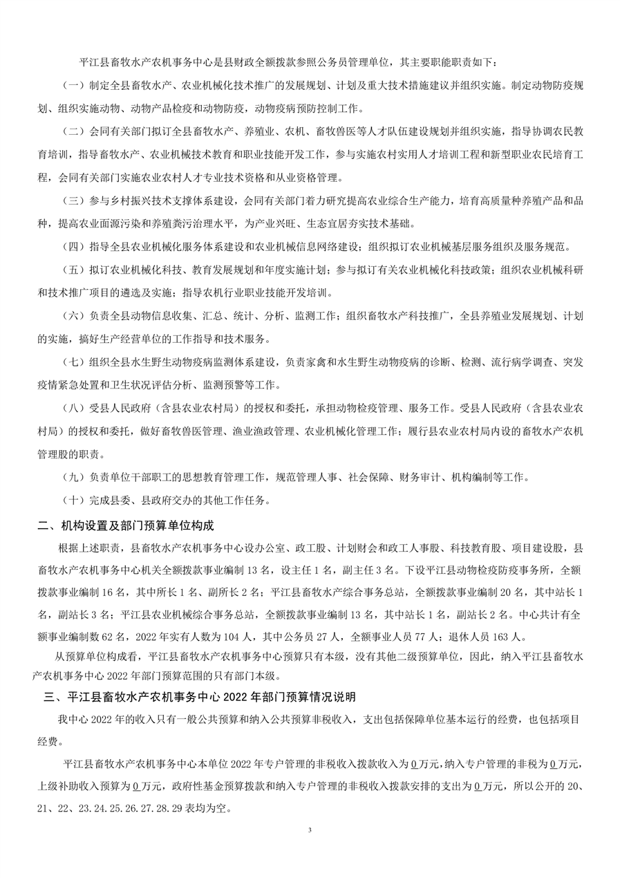 平江县畜牧水产农机事务中心2022年部门预算编报说明