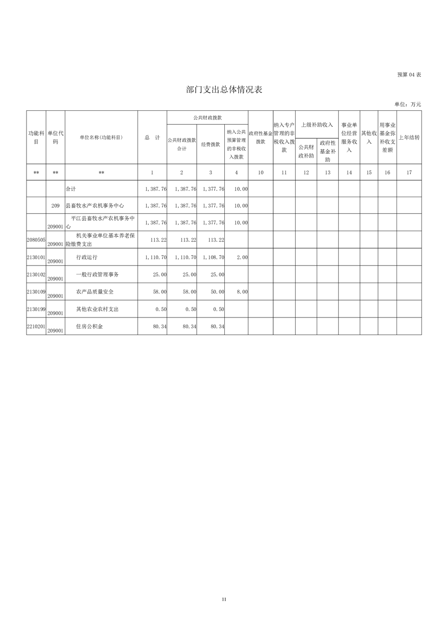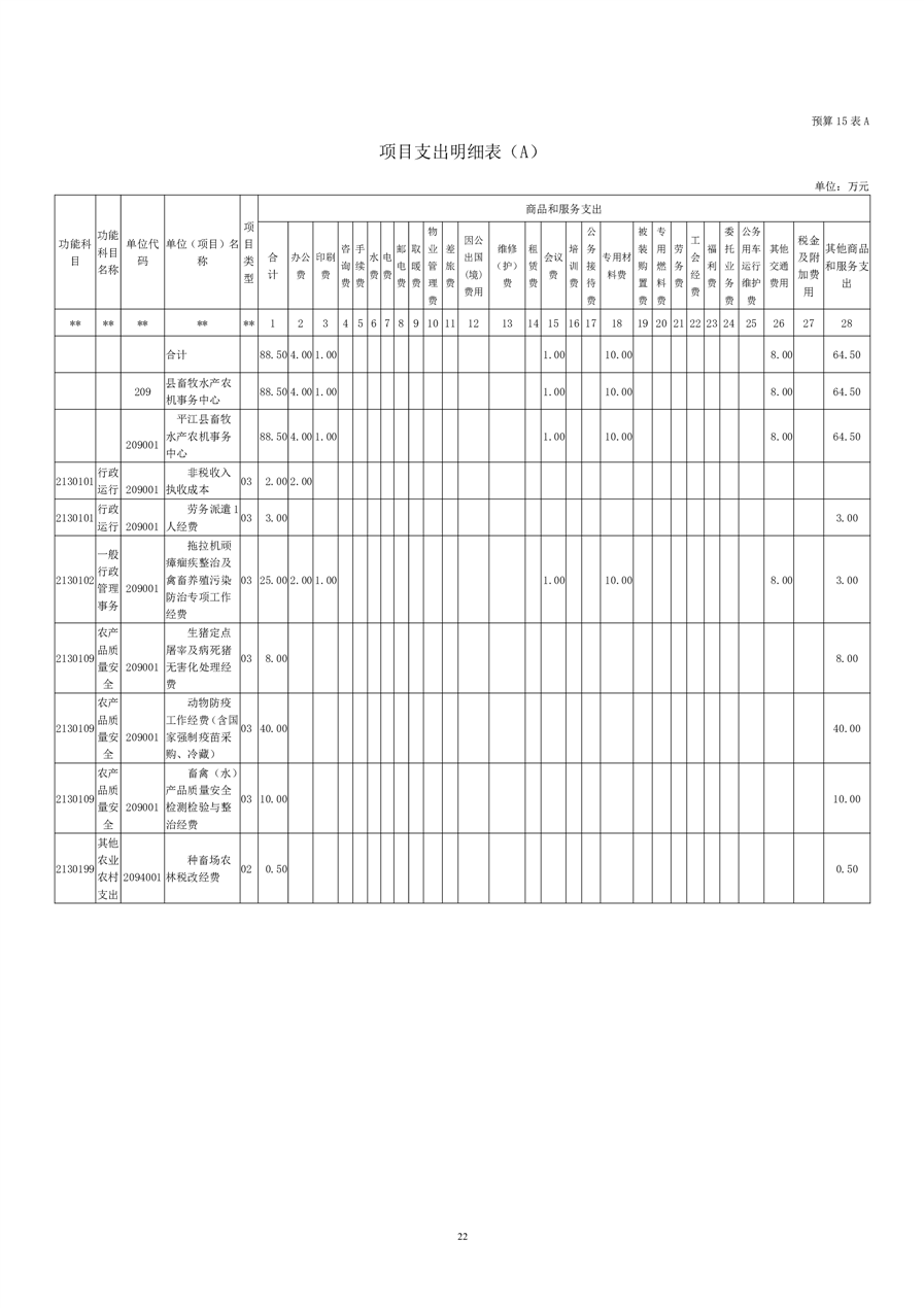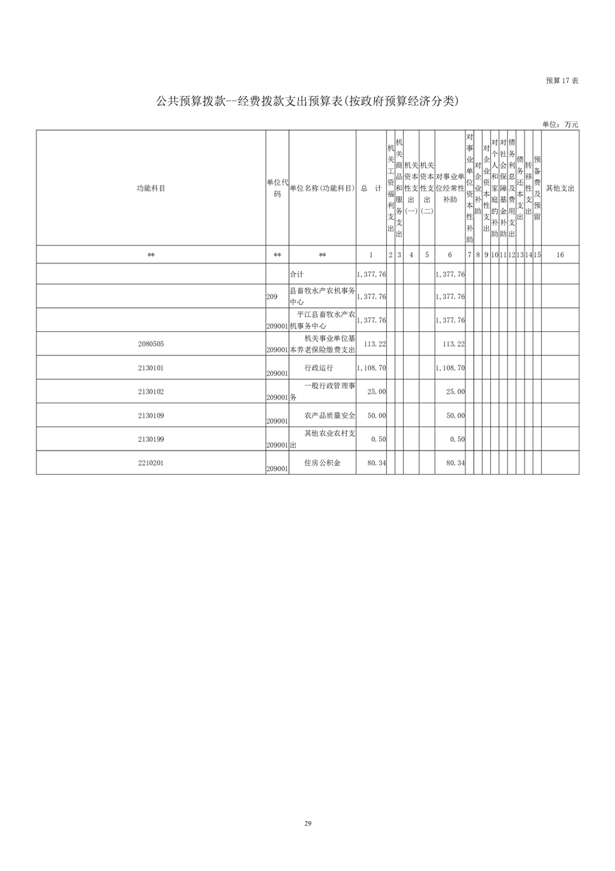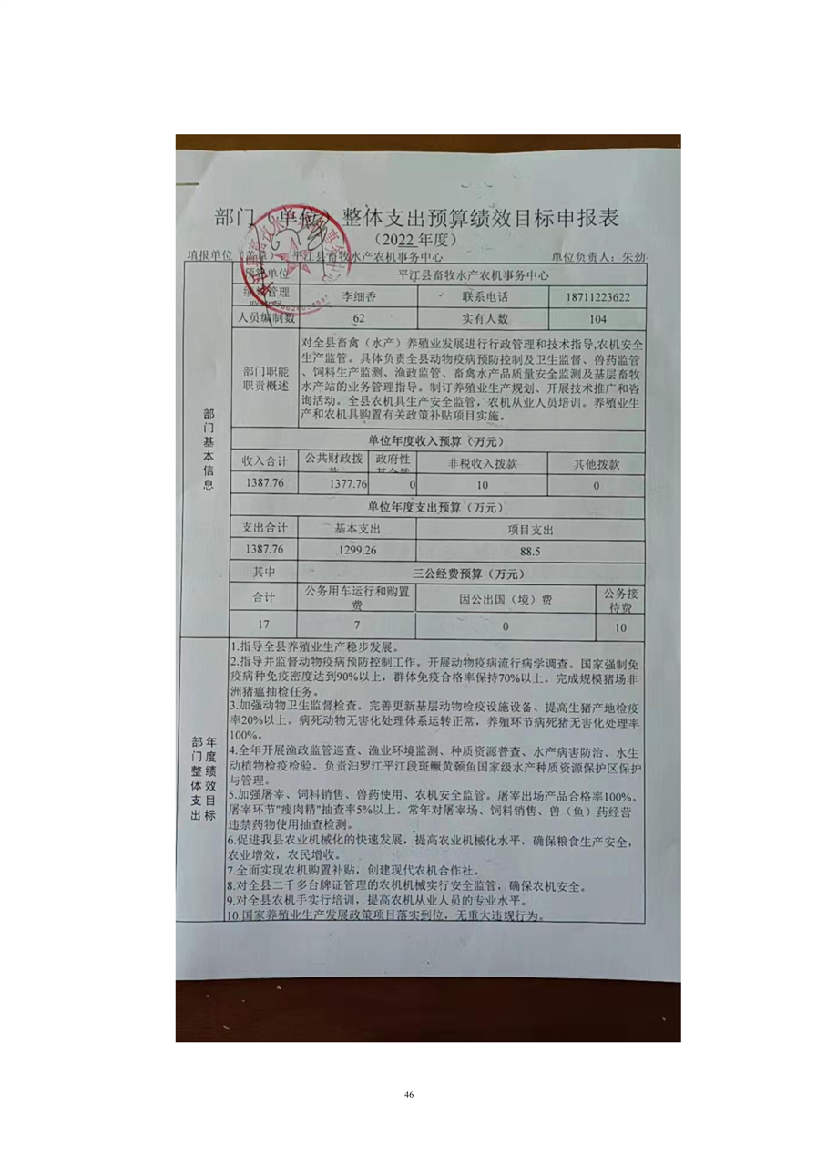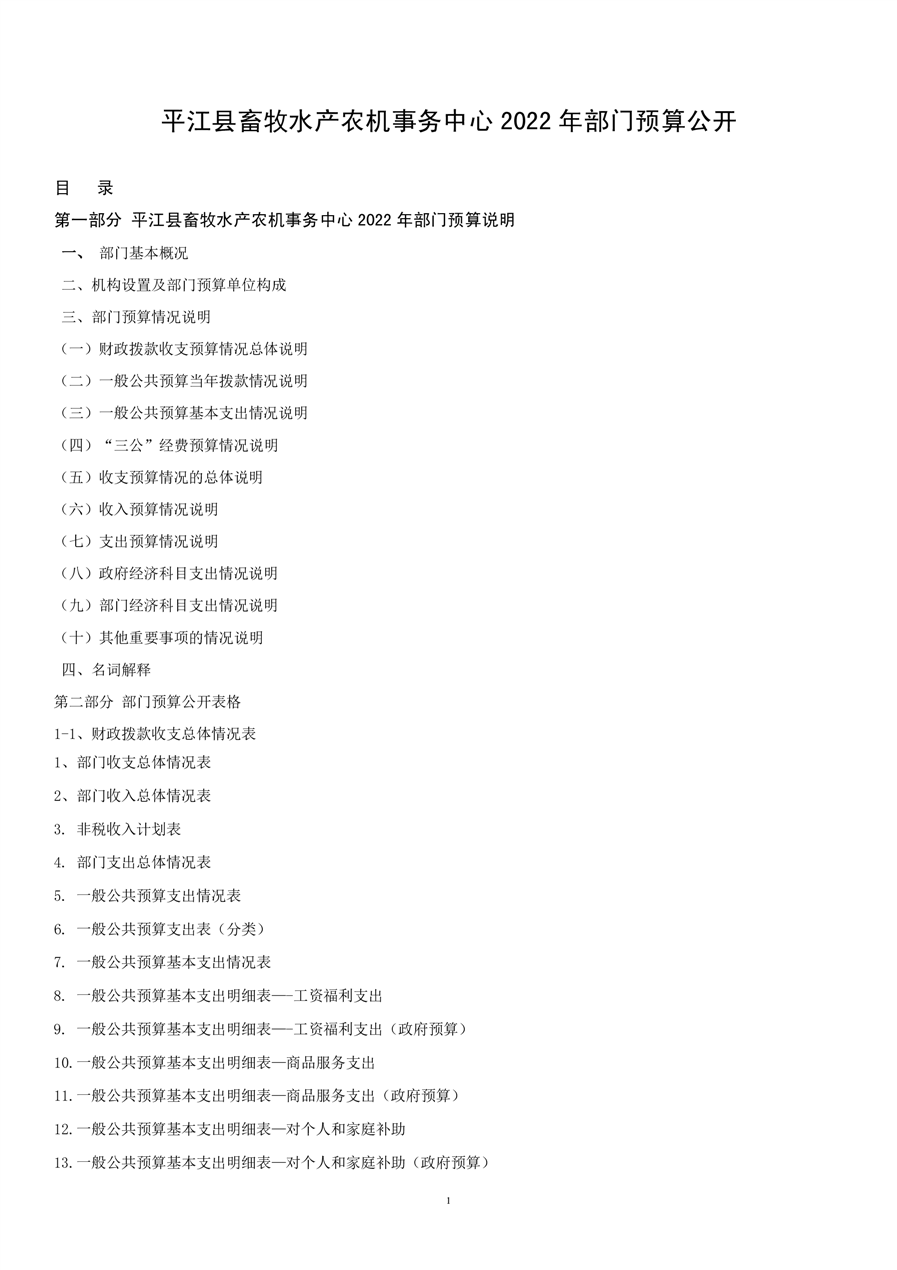 平江县畜牧水产农机事务中心2022年部门预算编报说明