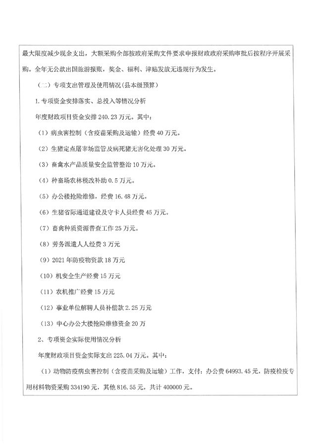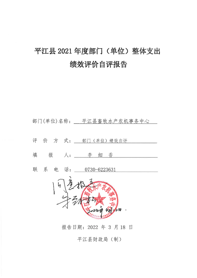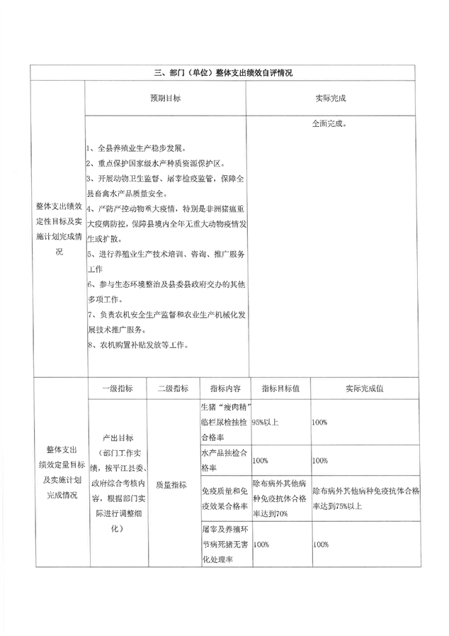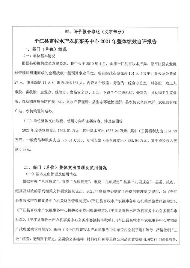 畜牧水产农机事务中心2021年度整体绩效评价自评报告