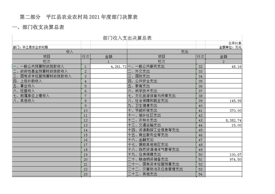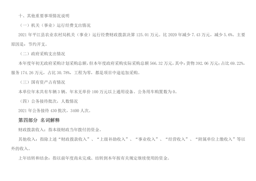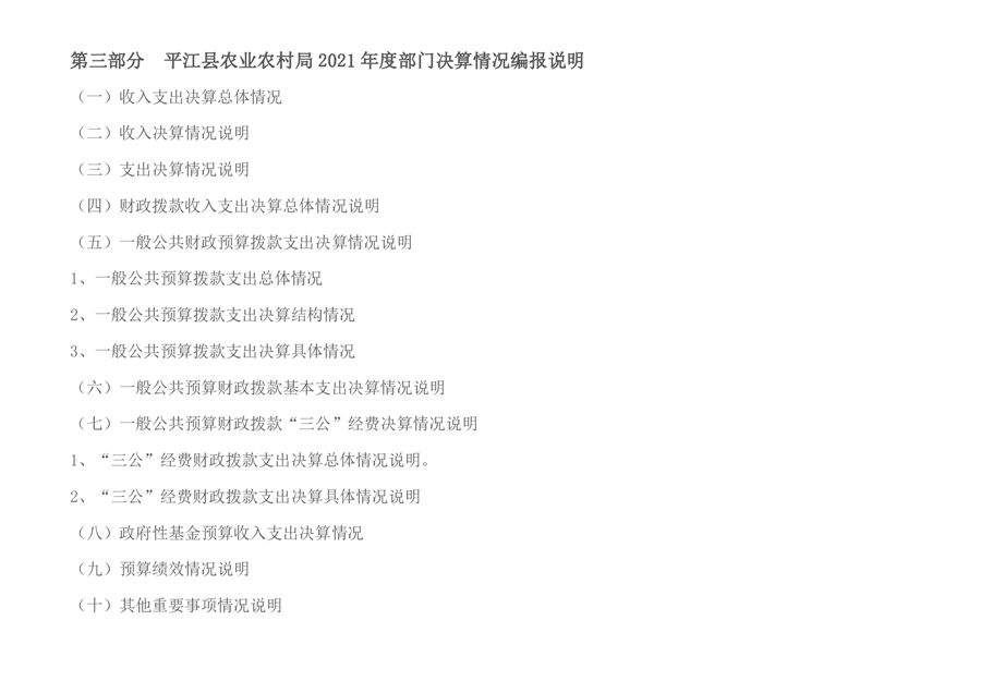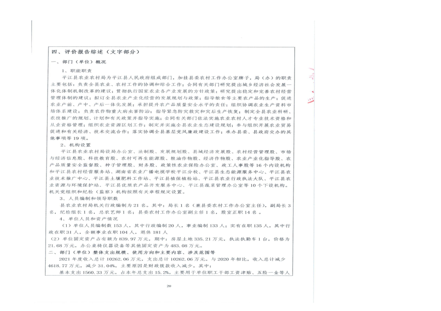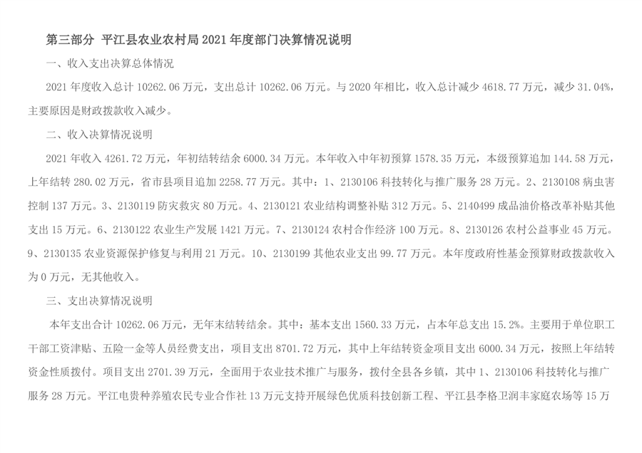 平江县农业农村局2021年部门决算编报说明