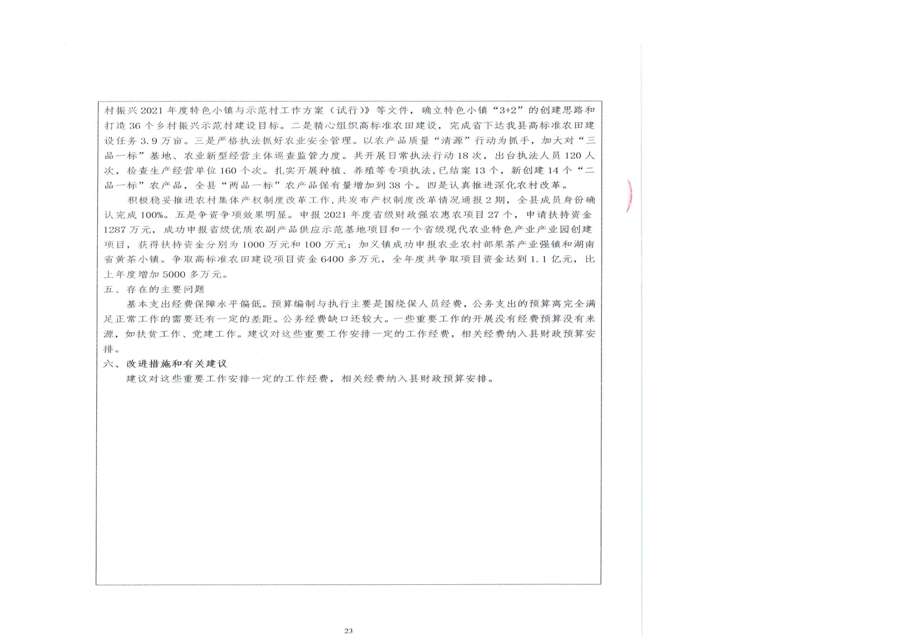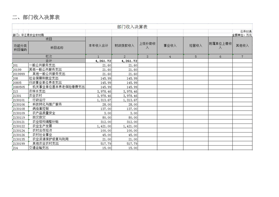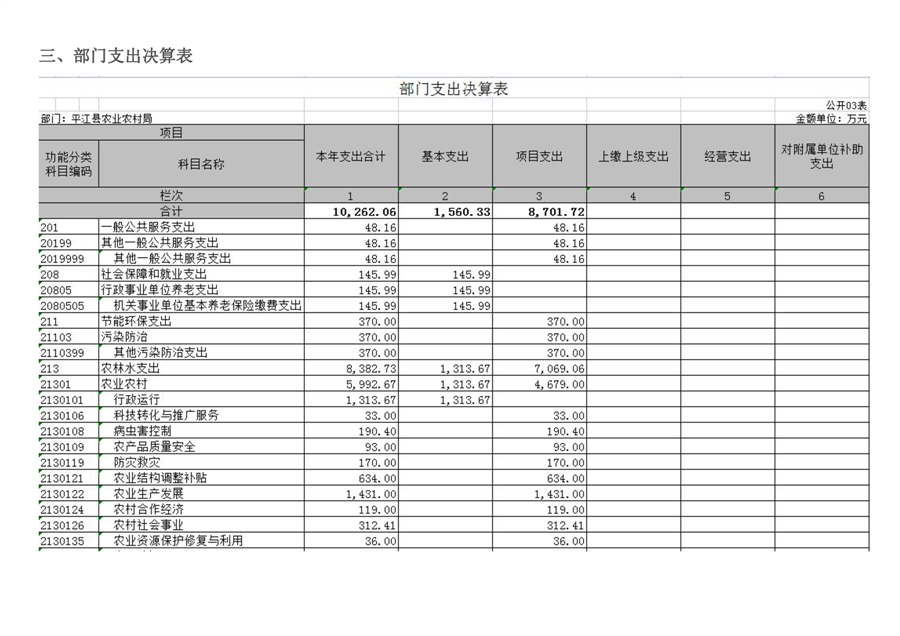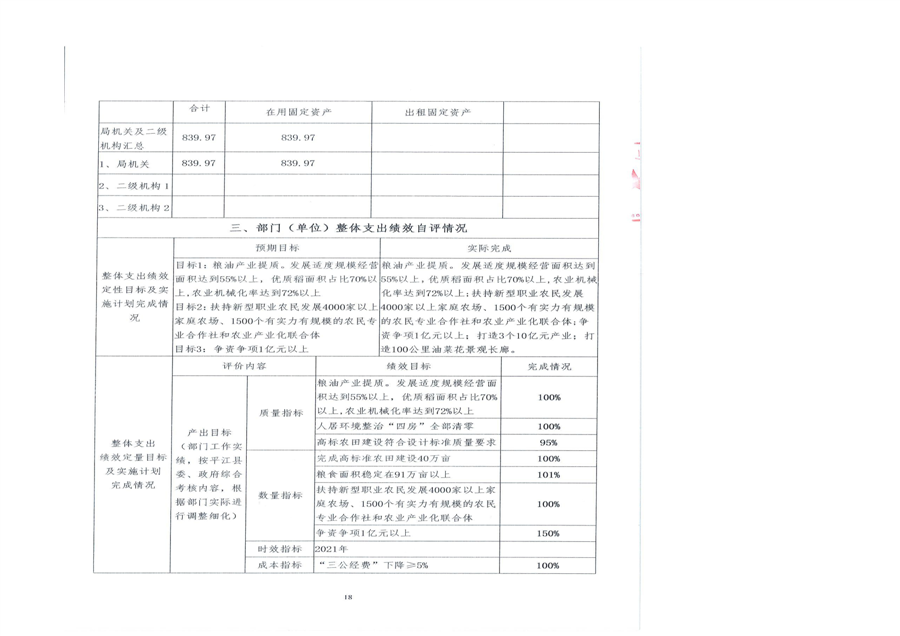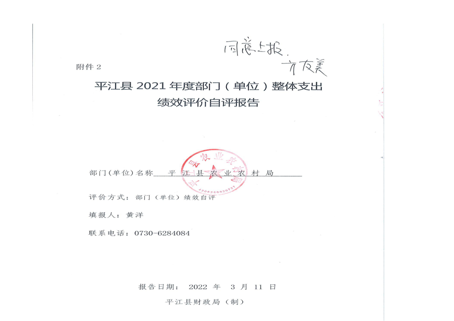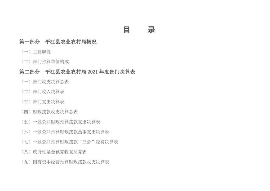 平江县农业农村局2021年部门决算编报说明