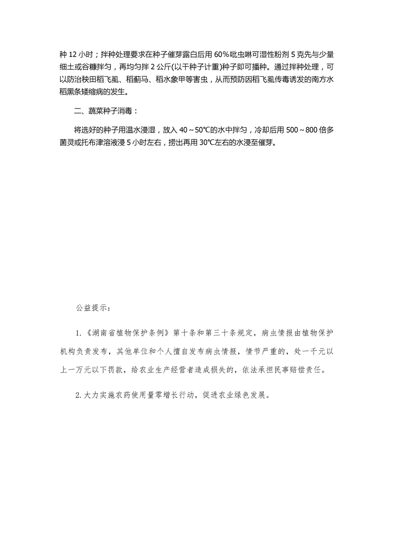 病虫情报(第二期)认真抓好稻种消毒和药剂拌种工作
